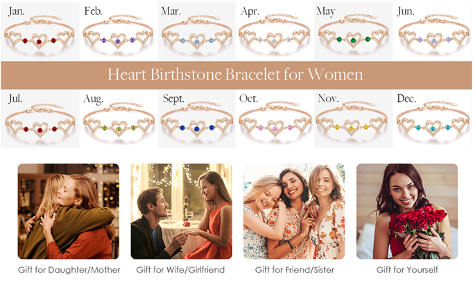 A sparkling piece of jewelry is an ideal gift to celebrate Valentine's Day, Mother's Day, Christmas 2022. Find CDE's heart birthstone jewelry gifts to give her/girlfriend/wife and to show your unconditional love. The graceful heart bracelet will lend a touch of style to her on birthdays, holidays, parties, etc.