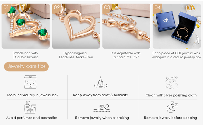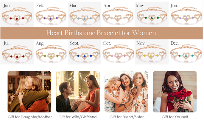 A sparkling piece of jewelry is an ideal gift to celebrate Valentine's Day, Mother's Day, Christmas 2022. Find CDE's heart birthstone jewelry gifts to give her/girlfriend/wife and to show your unconditional love. The graceful heart bracelet will lend a touch of style to her on birthdays, holidays, parties, etc.
