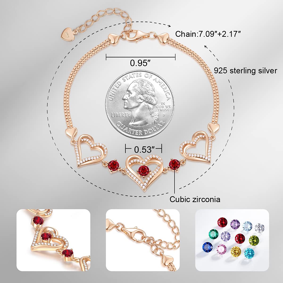 - ✦ GEM-QUALITY AAAAA CUBIC ZIRCONIA ✦ The birthstone bracelet is inlaid with gem-quality 5A cubic zirconia. 5A cubic zirconia is the highest grade in zirconia, which is elaborately selected from the 3A zirconia, with accurate size and cutting, reflecting the dazzling light like a diamond.