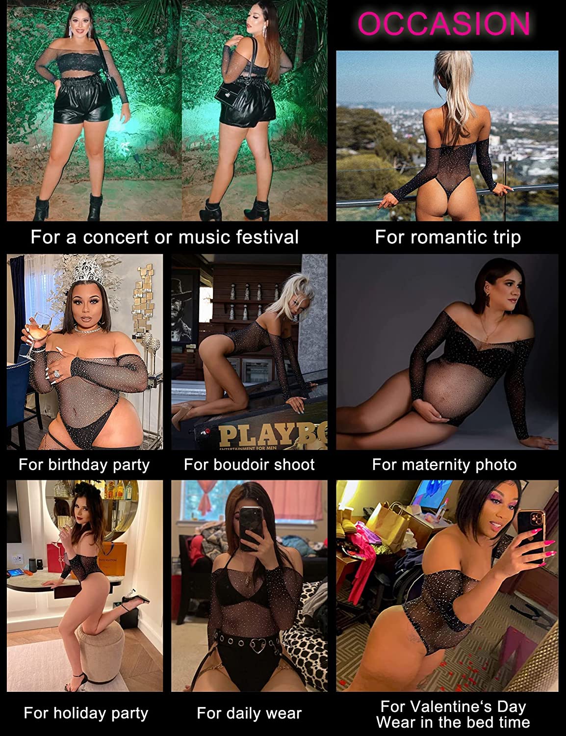 Sexy Bodysuit: Trimmed by mesh & sparkle rhinestone , long sleeves one piece bodysuits, it thoroughly shows off your stunning curves. Special and modern design makes you more attractive, charming, fashion and chic.Make you attractive to your lover,and spicing up your life