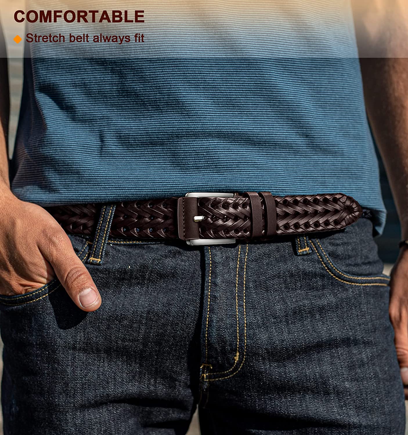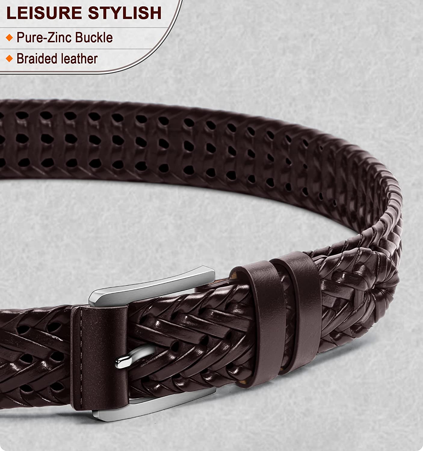 - Always-Fit--This Leather woven braided belt enable the buckle lock in any hole in the strip, thus get exact fit on your waist;