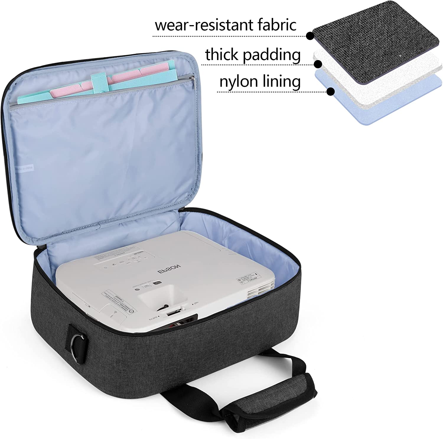 • PROTECTIVE: Made of heavy-duty nylon. Thick padding sandwiched between layers of material, which helps keep your projector and accessories in good condition.