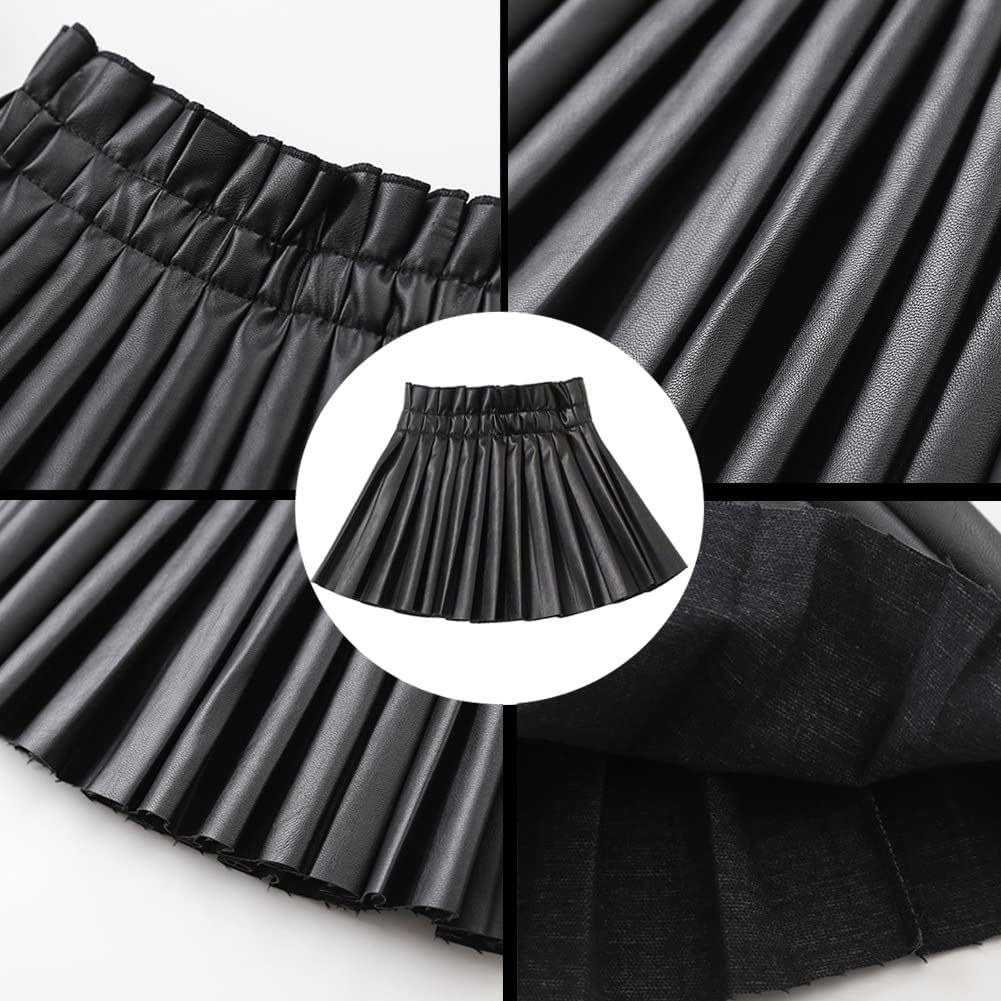 FEATURES: Elastic waist PU leather skirt, middle- length, neat folds. WELAKEN Girl's PU skirt will give you and your little one a perfect street look and makes you more outstanding in the crowd.