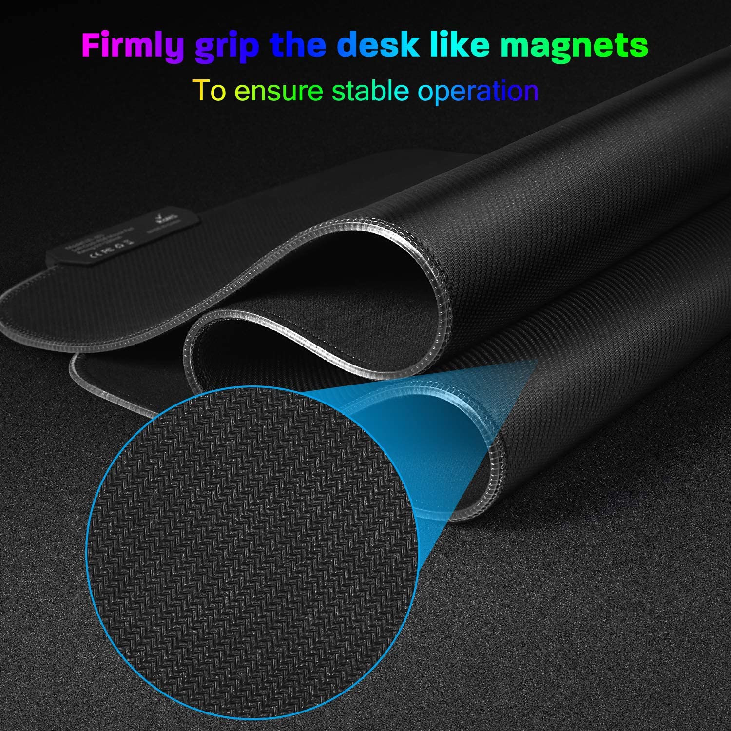 • 【 Ultra-Smooth & Waterproof Surface】 The RGB Gaming Mouse Pads design with superfine fiber braided material which are micro-textured, smooth surface, precise navigation without warped, so the mouse could moves seamlessly across the pad and then the cursor follows the mouse precisely. Waterproof design, even if you sprinkle water, tilt the mouse pad to pour out the drops.