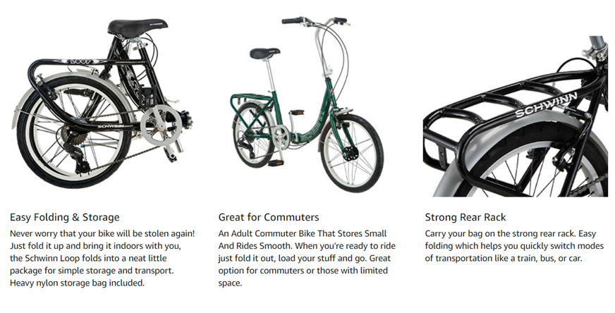 Enjoy a bike that makes urban cycling easy with the Loop by Schwinn. The Loop features a folding steel frame that’s both durable and exceptionally convenient for those with limited storage space. The 7-speed twist shifter provides smooth gear changes, while the front and rear linear pull brakes deliver secure stops. The 20-inch alloy wheel with smooth rolling street tires are perfect for your weekday commute or weekend ride around town. The rear carrier with included heavy-gauge nylon bag makes is super easy to haul your backpack, groceries, or whatever else you need to carry on your ride. Then, when you’re all done, just fold the bike right up into its ultra-compact storage configuration, and you can tuck it away until it’s time to go again. Like all Schwinn bikes, the Loop comes with a limited lifetime warranty for as long as you own the bike. Convenience is the name of the game with the Loop. Enjoy the freedom of riding a Schwinn.