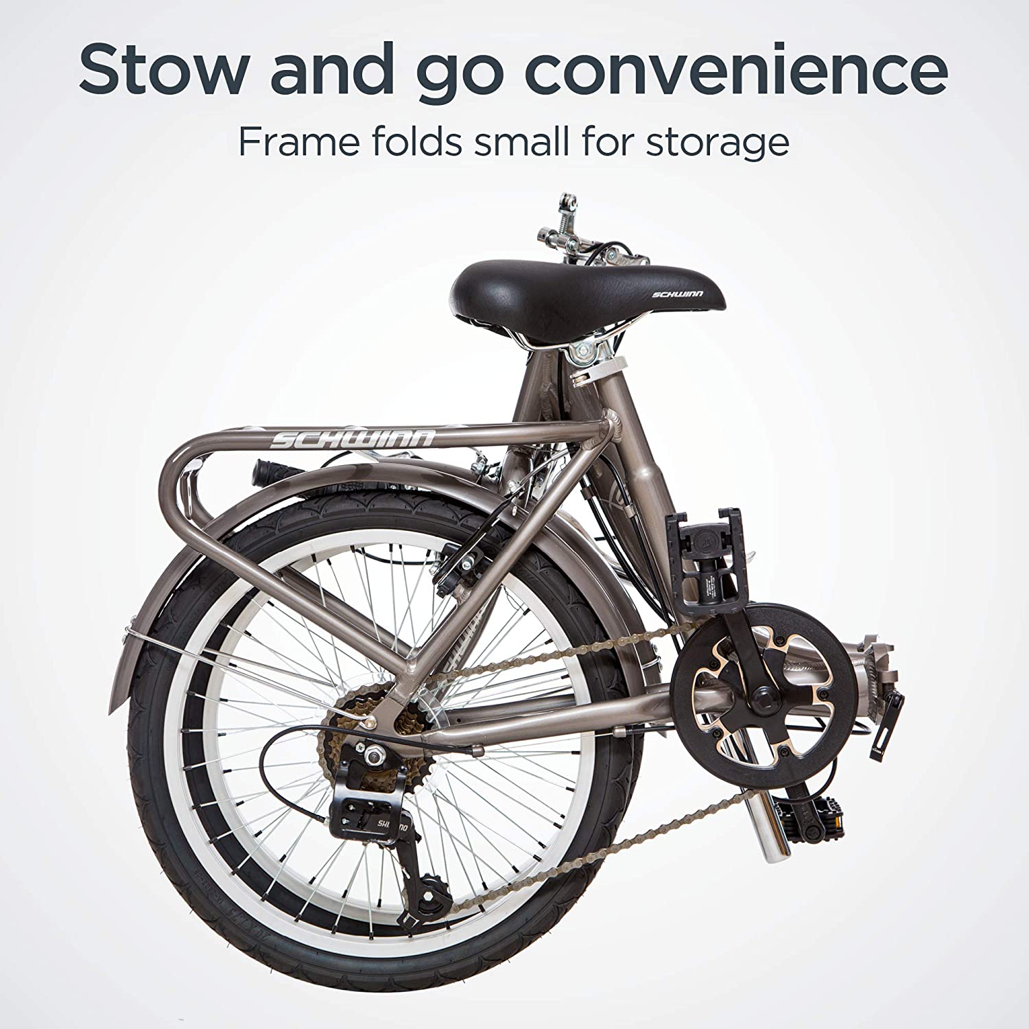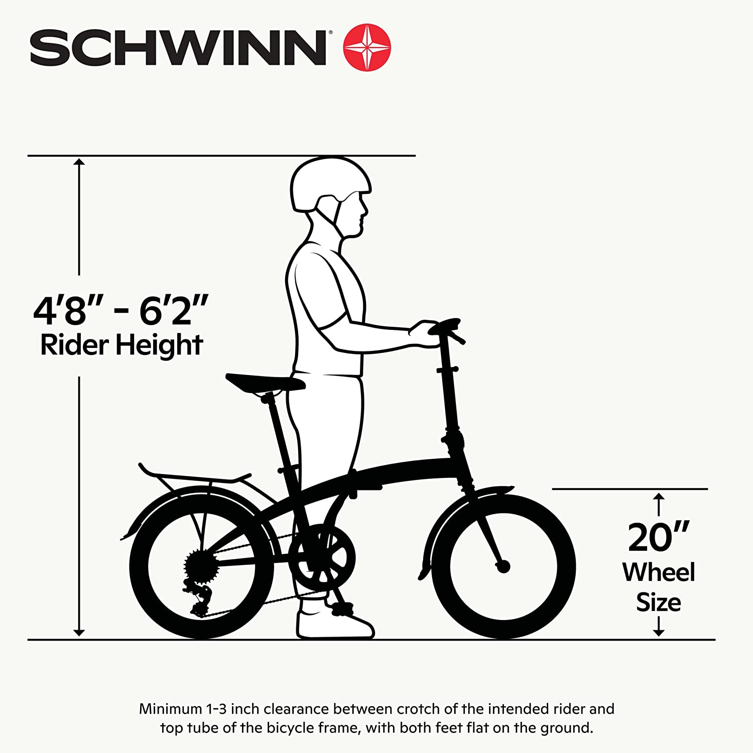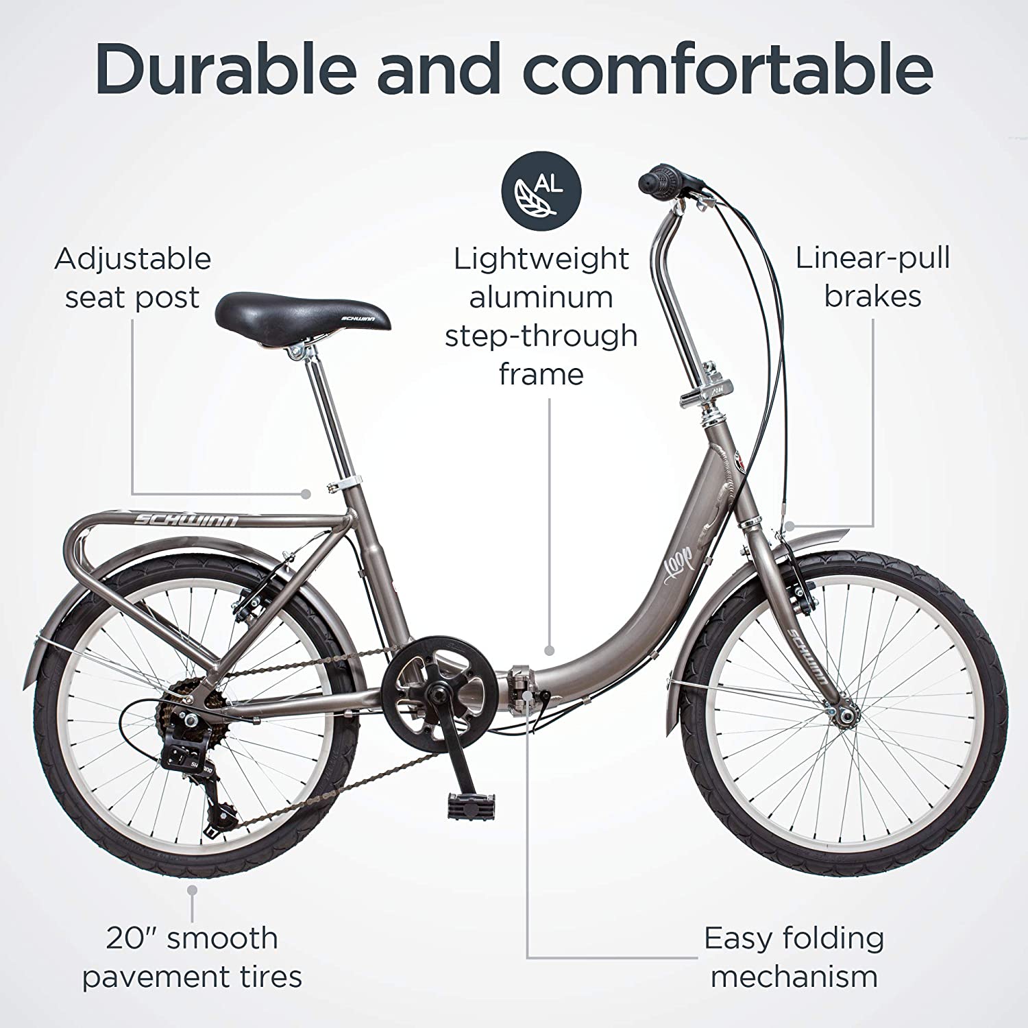 Schwinn Loop Adult Folding Bike, 20-inch Wheels, 7-Speed Drivetrain, Rear Carry Rack, Carrying Bag, Multiple Colors