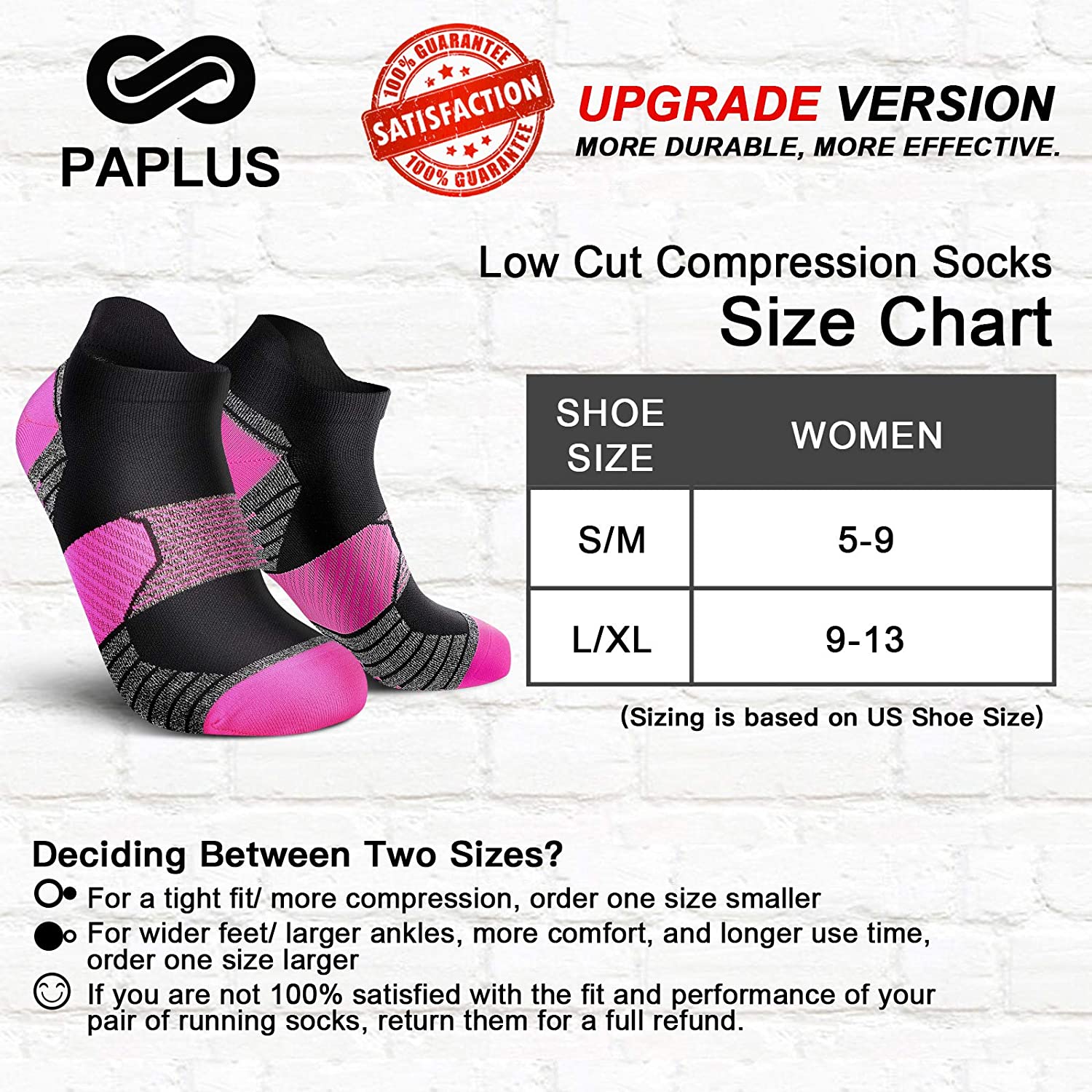 PAPLUS Compression Running Socks Women (6 Pairs), Ankle Athletic Socks Low Cut with Arch Support…