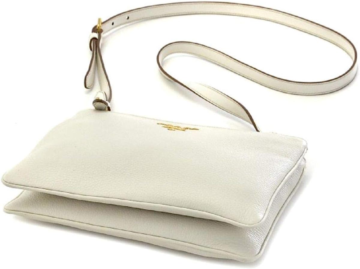 This Prada Women's White Vitello Phenix Leather Crossbody Handbag is a beautiful and elegant handbag that can be worn with everyday looks. It is practical yet luxurious and comes with an adjustable shoulder strap. The two exterior pockets are great for storage and organizing your personal belongings. The gold toned hardware and Prada Paris logo goes beautifully with this white Prada handbag.