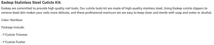 Easkep cuticle scissors with cuticle pusher and cutter is a great professional tool for manicure and pedicure uses, our cuticle care is a terrific cuticle clippers for women and girls who love nail art as Valentine's Day gift, birthday gift, Christmas gift & Halloween Gift.