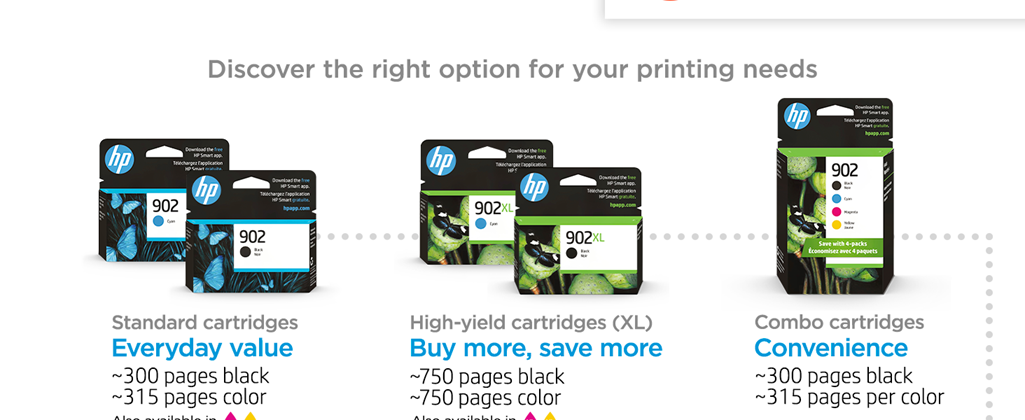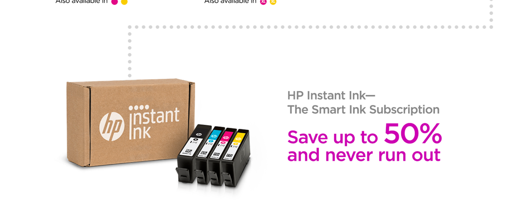 • Get ink your way: buy Original HP Ink Cartridges or save up to 50% and never run out with HP Instant Ink, the Smart Ink Subscription