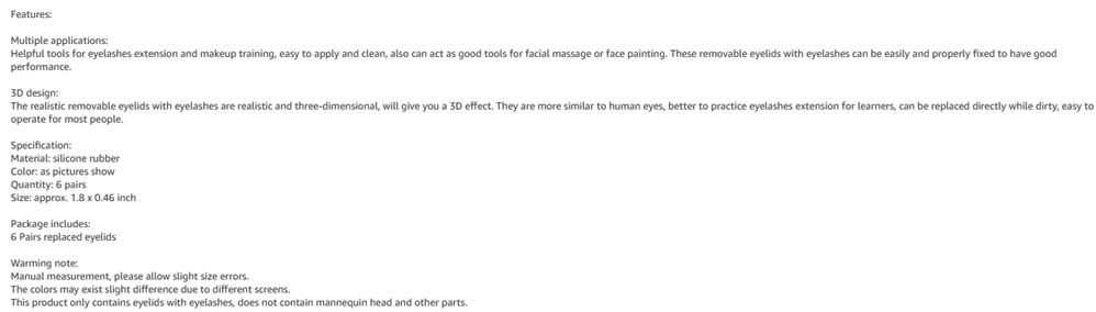 What you will get: the total package comes with 6 pairs replacement eyelids with eyelashes, all are available in basic colors, enough for your daily training and replacement, easy to operate with, can be replaced directly when they are dirty