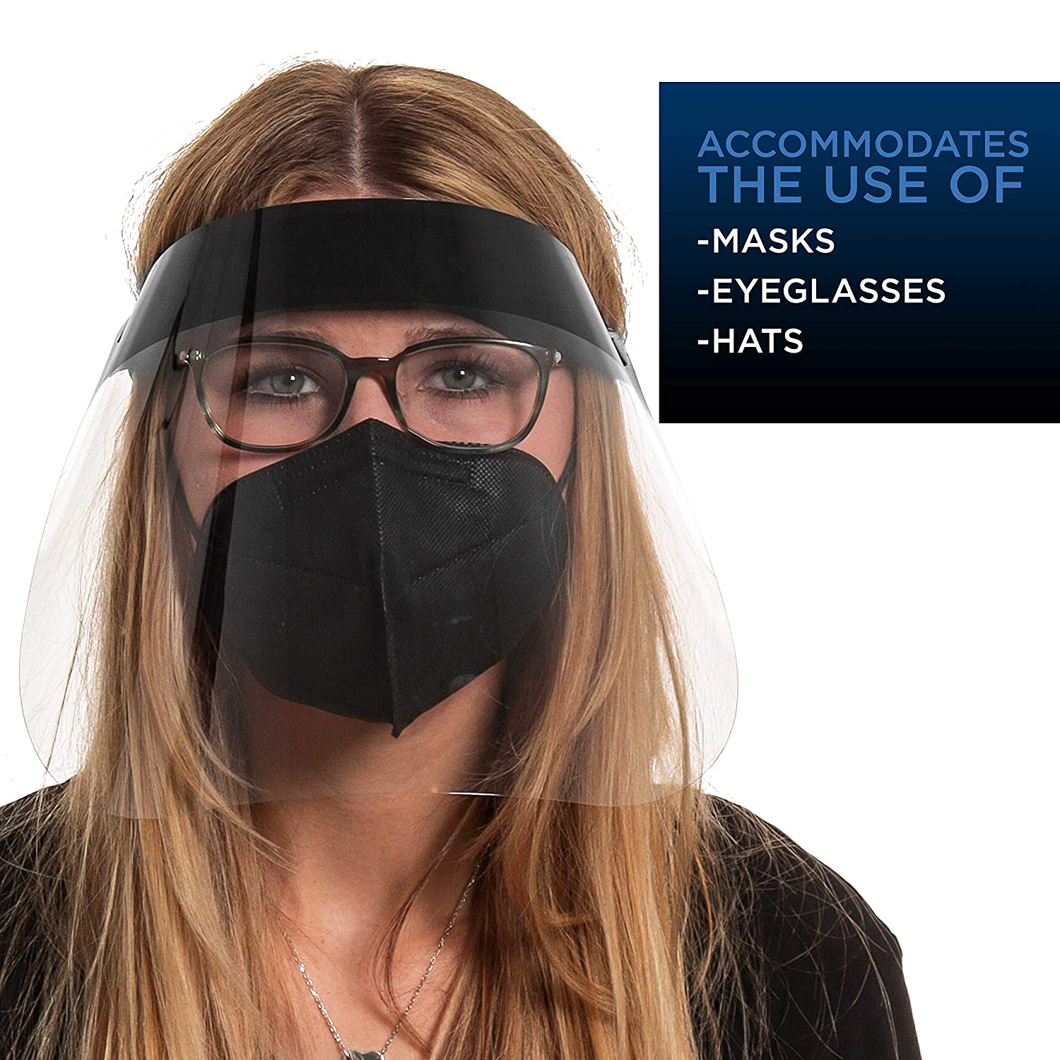 Salon World Safety Black Face Shields - Ultra Clear Protective Full Face Shields to Protect Eyes, Nose and Mouth - Anti-Fog PET Plastic, Elastic Headband - Sanitary Droplet Splash Guard (Pack of 4)