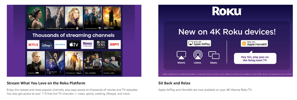 The Hisense Roku TV R6 Series packs incredible details into a 4K Ultra High Definition picture. It features High Dynamic Range (HDR) that boosts color and contrast while Motion Rate 120 technology makes it easier to follow fast action scenes. Plus, with a Roku TV operating system, it's easier to watch what you love with access to thousands of streaming channels, apps, and live TV.
