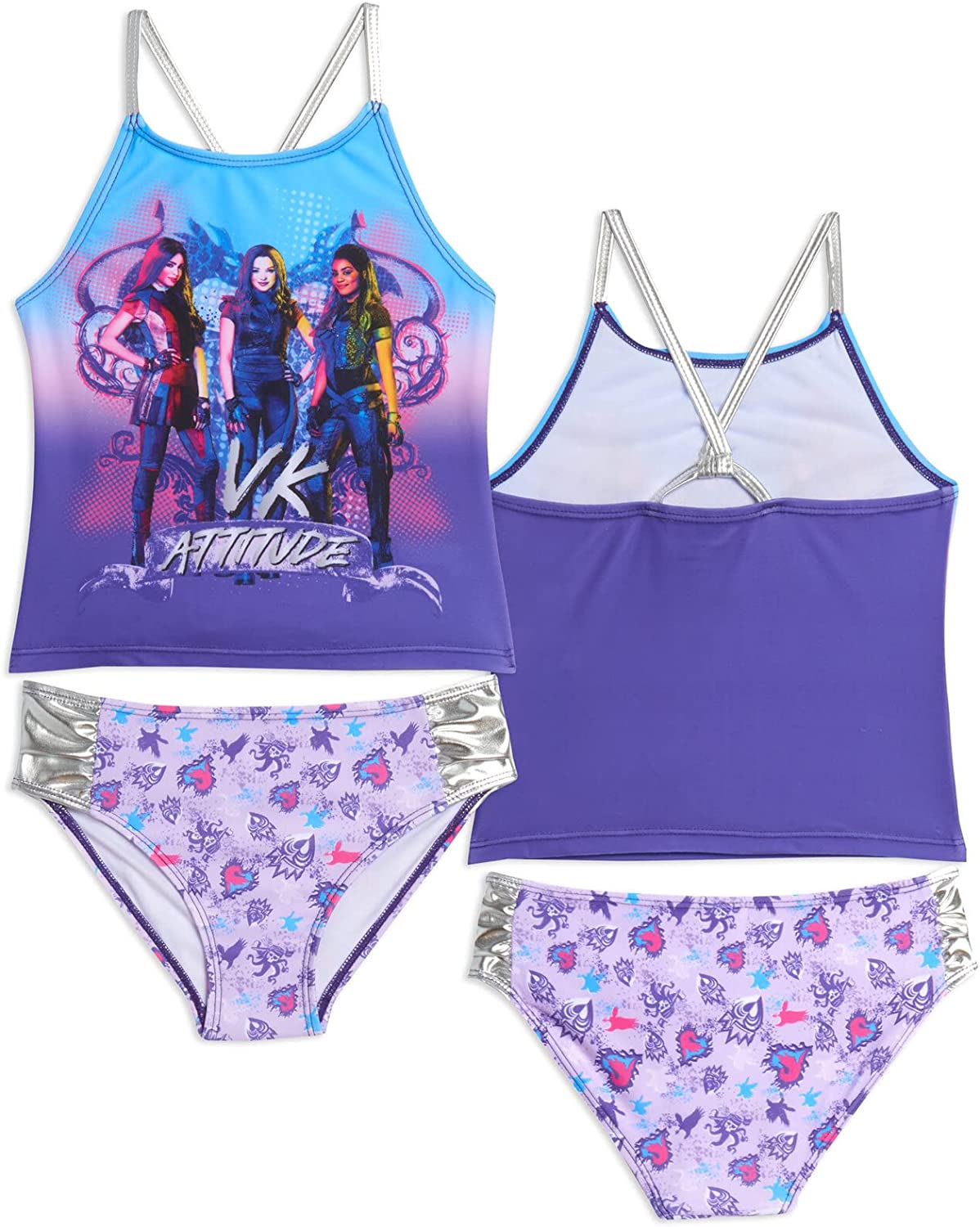- Disney Descendants little girls cute and stylish two piece bathing suit set including a tankini top and full coverage swim bottoms