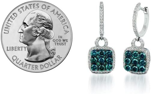 1 1/4 Carat White and Blue Diamond Dangle Drop Earrings for Women in 14k White Gold (H-I, VS2-SI1, cttw) Square Huggie Earrings by LeVian