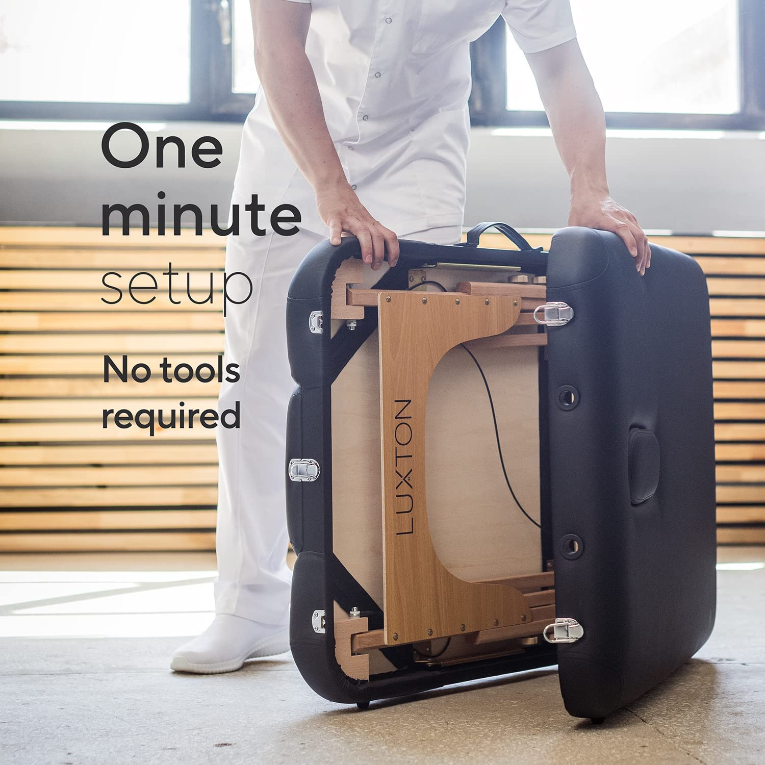 Luxton Home 3-Section Premium Memory Foam Massage Table with Rolling Carrying Travel Case - Easy Set Up - Foldable & Portable - Adjustable Height, Head Cradle, Hanging Arm Rest, & Side Storage Pocket