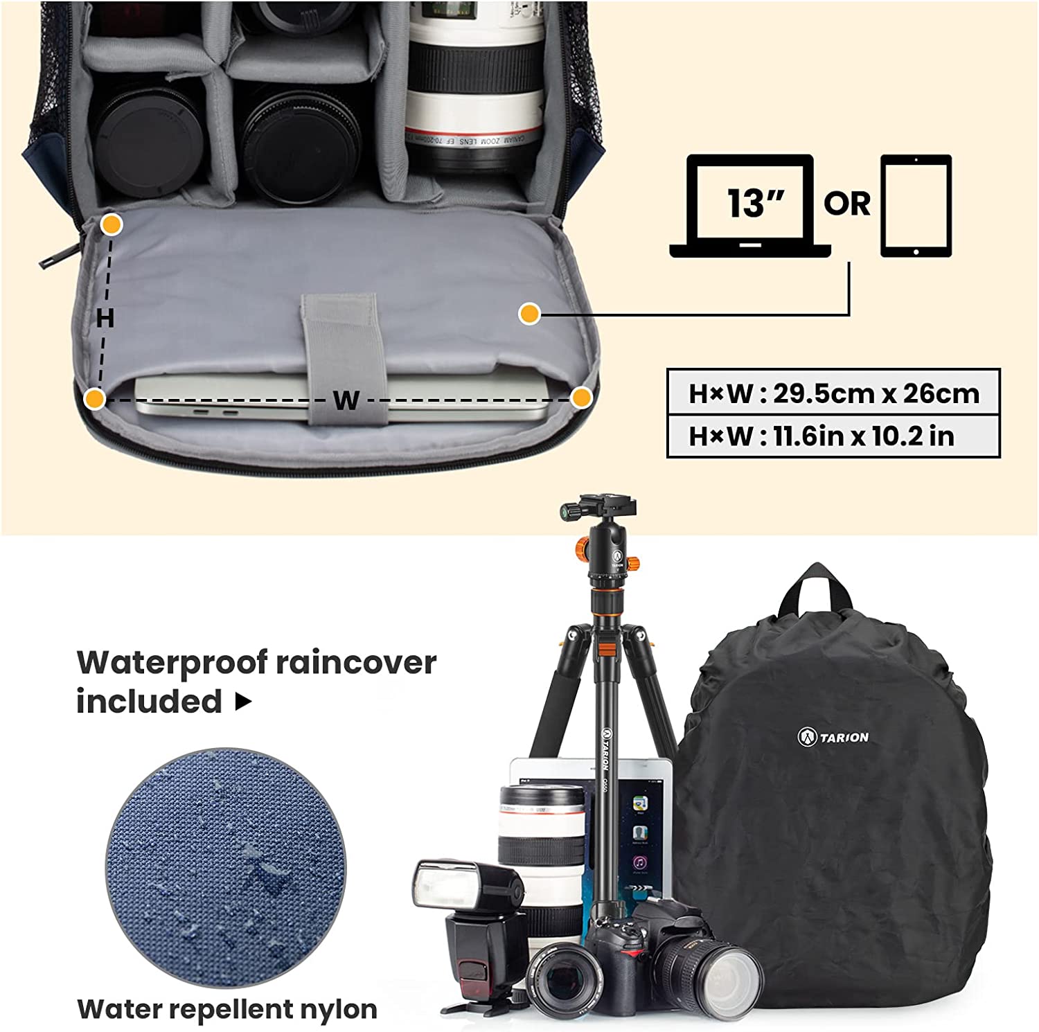 - 【MULTI-FUNCTIONAL】 This dslr camera backpack can be easily converted into a lightweight flexible simple straight daily backpack by removing the camera compartment dividers. Super easy to use for small day trips, there's enough room for personal gear. If you are not satisfied with our camera bag or have any questions, please feel free to contact us. TARION is always here.