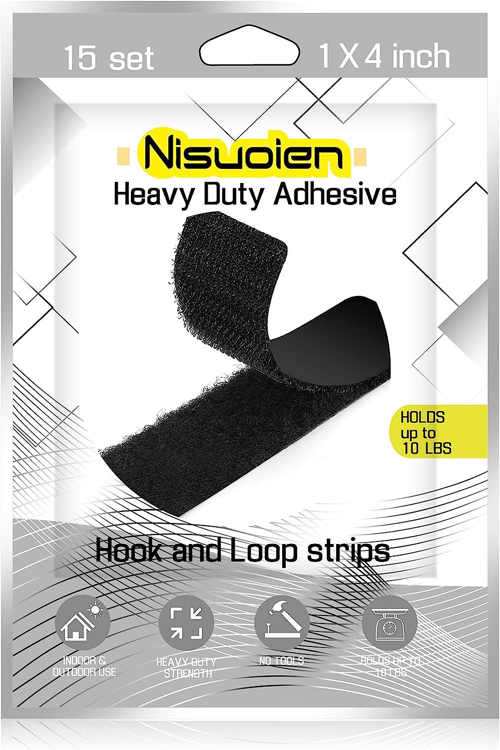 15 Sets Strips with Adhesive - Strong Double Sided Tape with Hook and Loop - 1 x 4 Inch