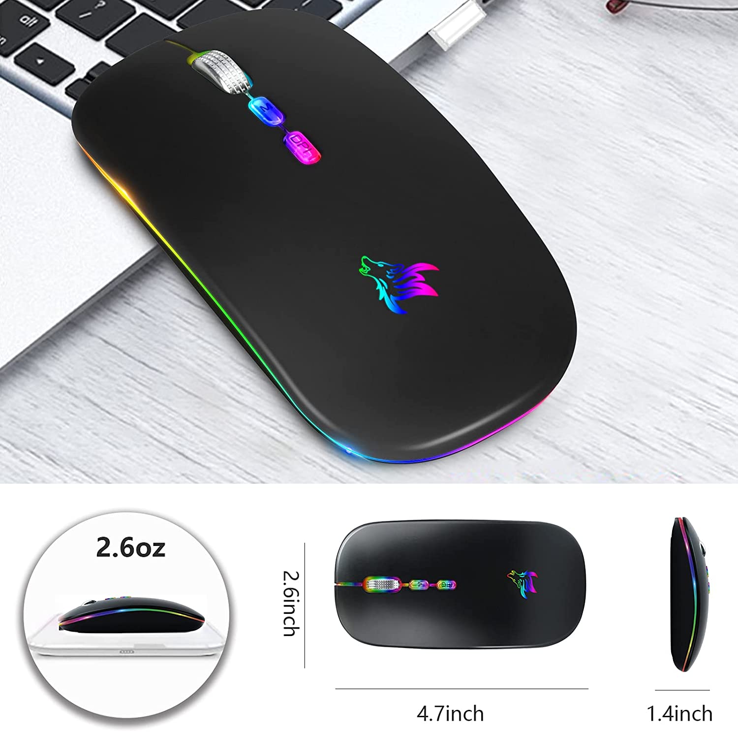 【Led Wireless Mouse】: This wireless mouse Bluetooth with lights can give you more fun during office time. You can choose use the 2.4G wireless mouse when the mouse botton switch is on the 2.4G mode,or connect your laptop's Bluetooth to use the Bluetooth mouse, easy to switch,suitable for any occasion.