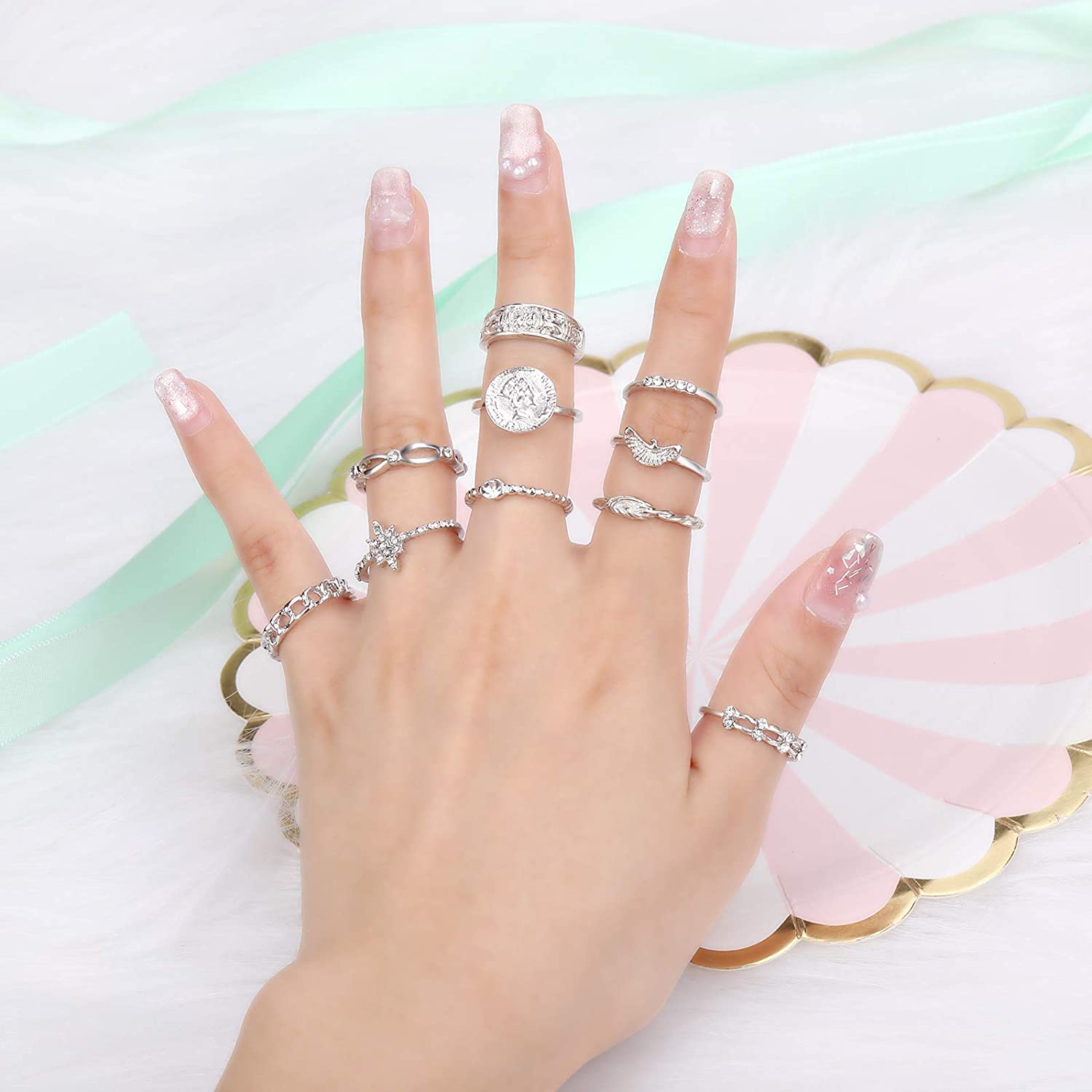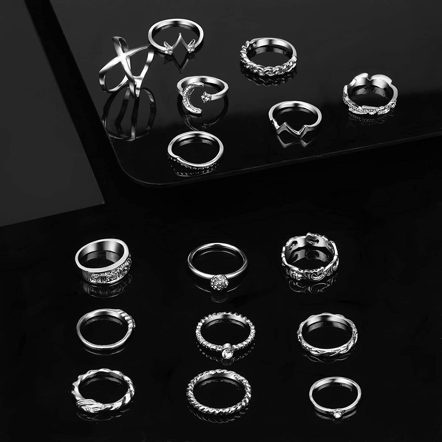 DESIGN - These rings set for women and men has various styles: simple ring, crystal ring, criss ring and rope ring, etc, which can be matched with all kinds of clothes. You will be attractive when you wear them.