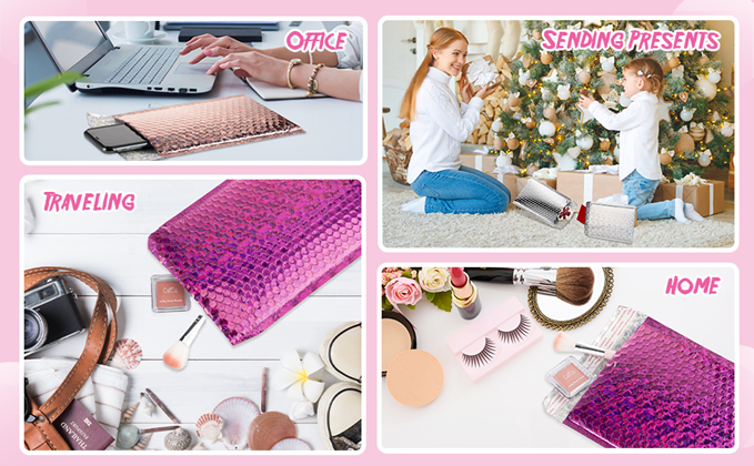 • Multiple applications: these glamorous packaging envelopes can be applied in the offices, at home, in the shops, at schools; They are great for packing cell phones, electronics, gifts, holiday orders, invitation and greeting cards, books, makeup stuff, cosmetics, essential oils, jewelry, accessories, etc.