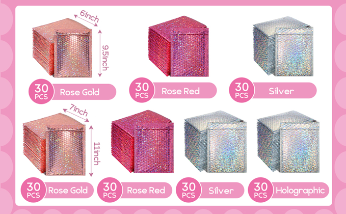 • Amount of package: you will get 30 piecesholographic bubble mailers (11 x 7 inches), such large quantity to meet your various needs, you can also share them with your friends and family