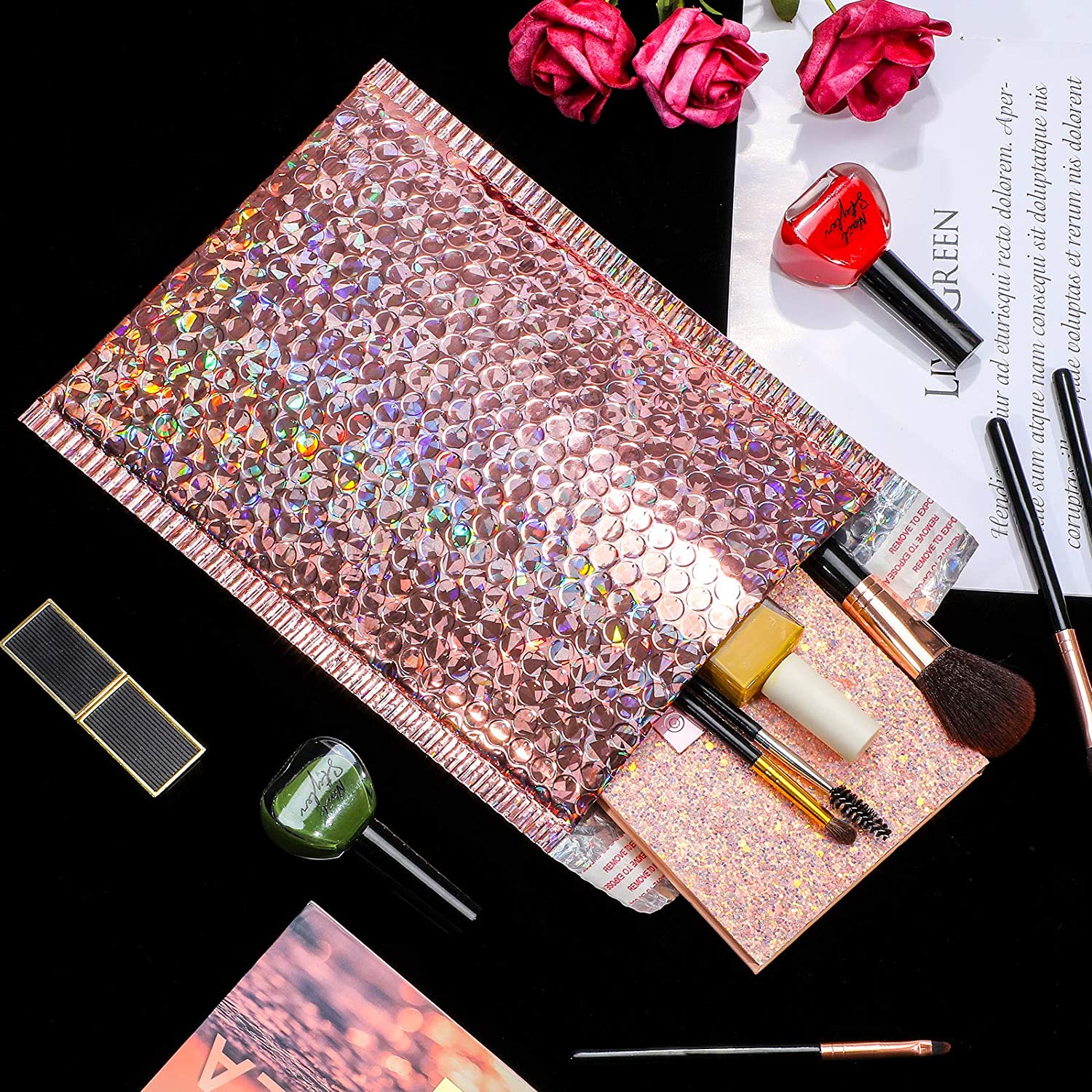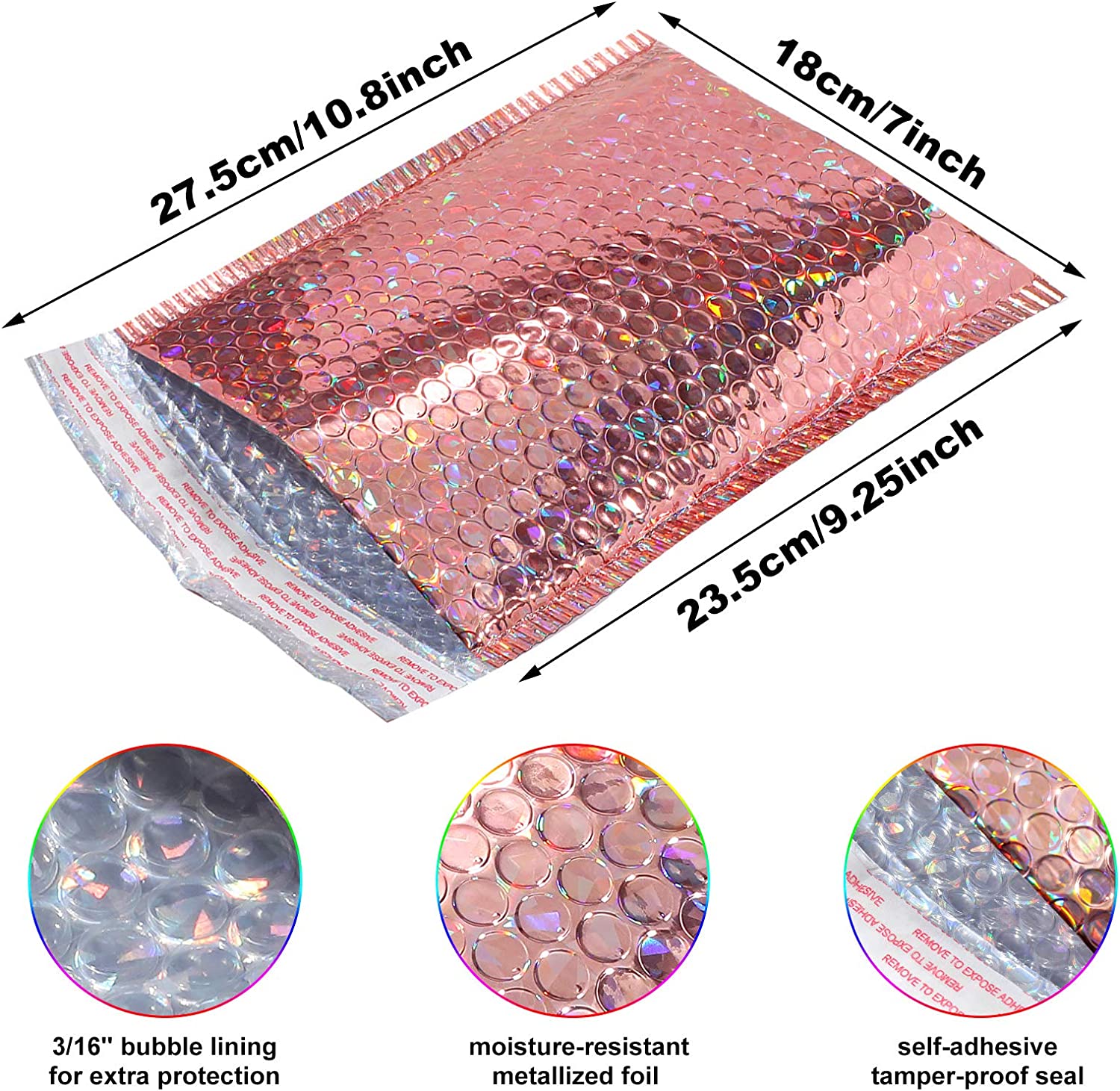 30 Pieces Holographic Bubble Mailers Bubble Mailers Padded Envelopes Self Sealing Cushion Envelopes for Mailing, Shipping and Packing, 11 x 7 Inch(Rose Gold)