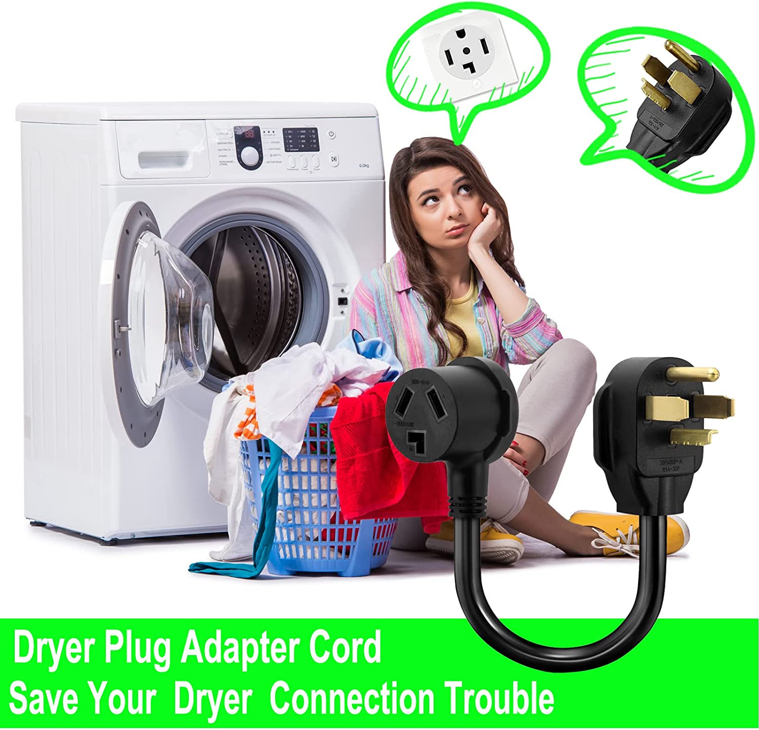 - 【High quality】Buy a new Dryer? Hire an Electrician? You neither have to hire electrician to take your dryer apart to get the cord rewired, nor have you to buy a new electric clothes dryer. you have to do is plug it in, perfectly simple.10AWG dryer power cord made of copper with UL approved for PVC wire in UL 62 standard Support Max 30 Amp.