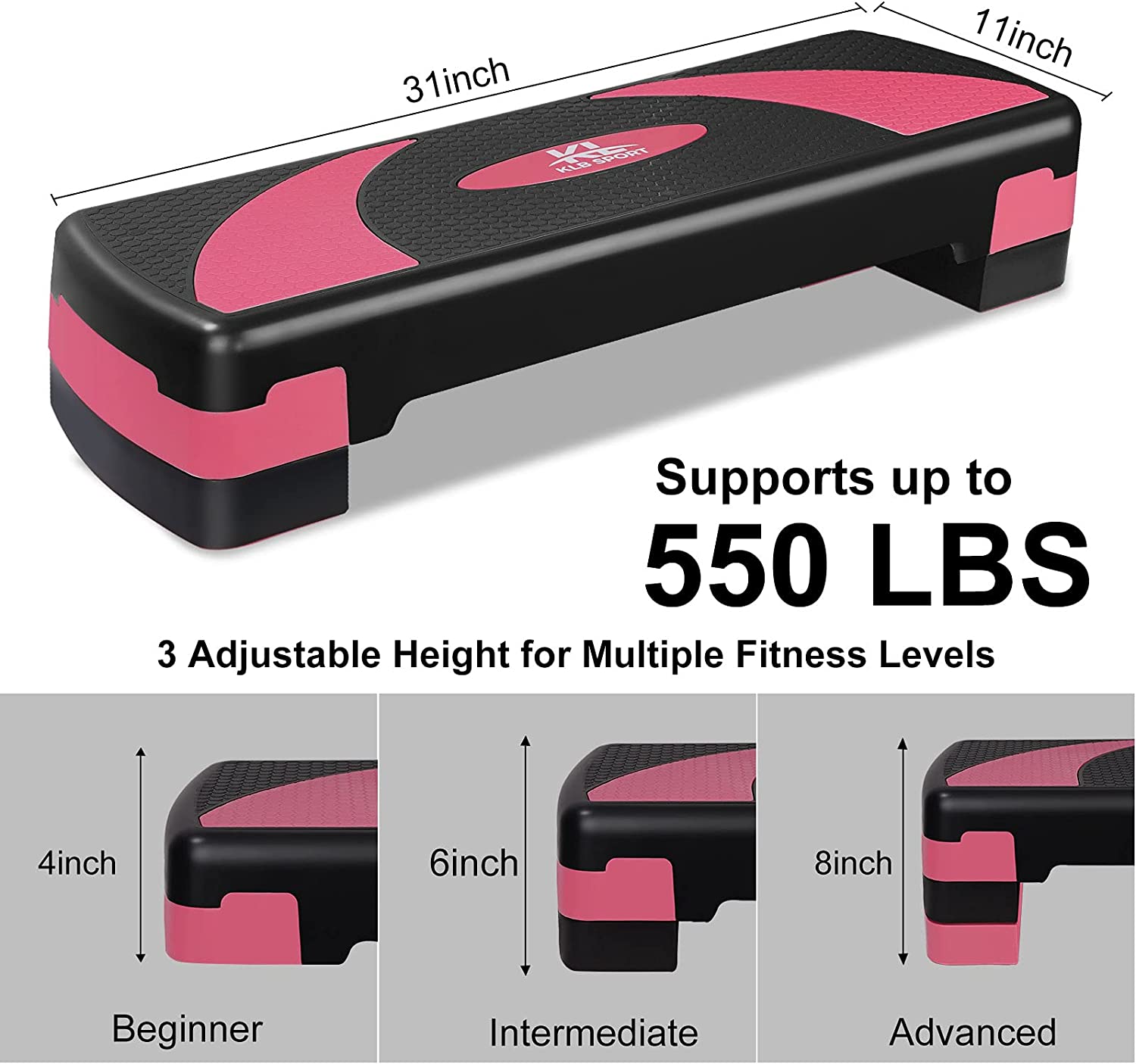 • 【Easy to Carry and Store】31"(L) x 11"(W) x 4"(H), it's easy to carry to workout classes at a gym or office. Stack the risers underneath the platform for easy storage. Great for workout classes, recovering from an injury, or everyday regular workout routines.