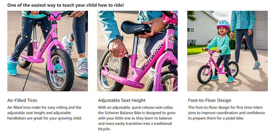 • Designed with 12-inch wheels, this bike fits riders ages 2 to 4, or 28" to 38" in height
