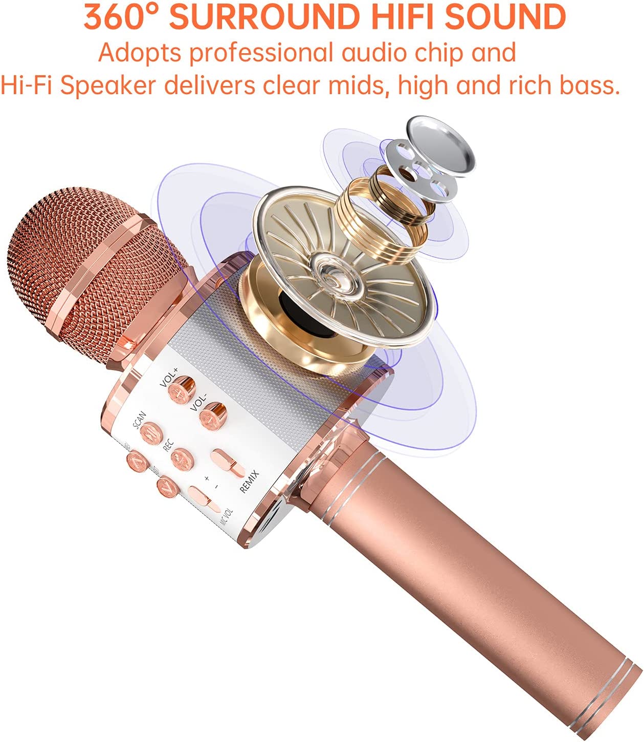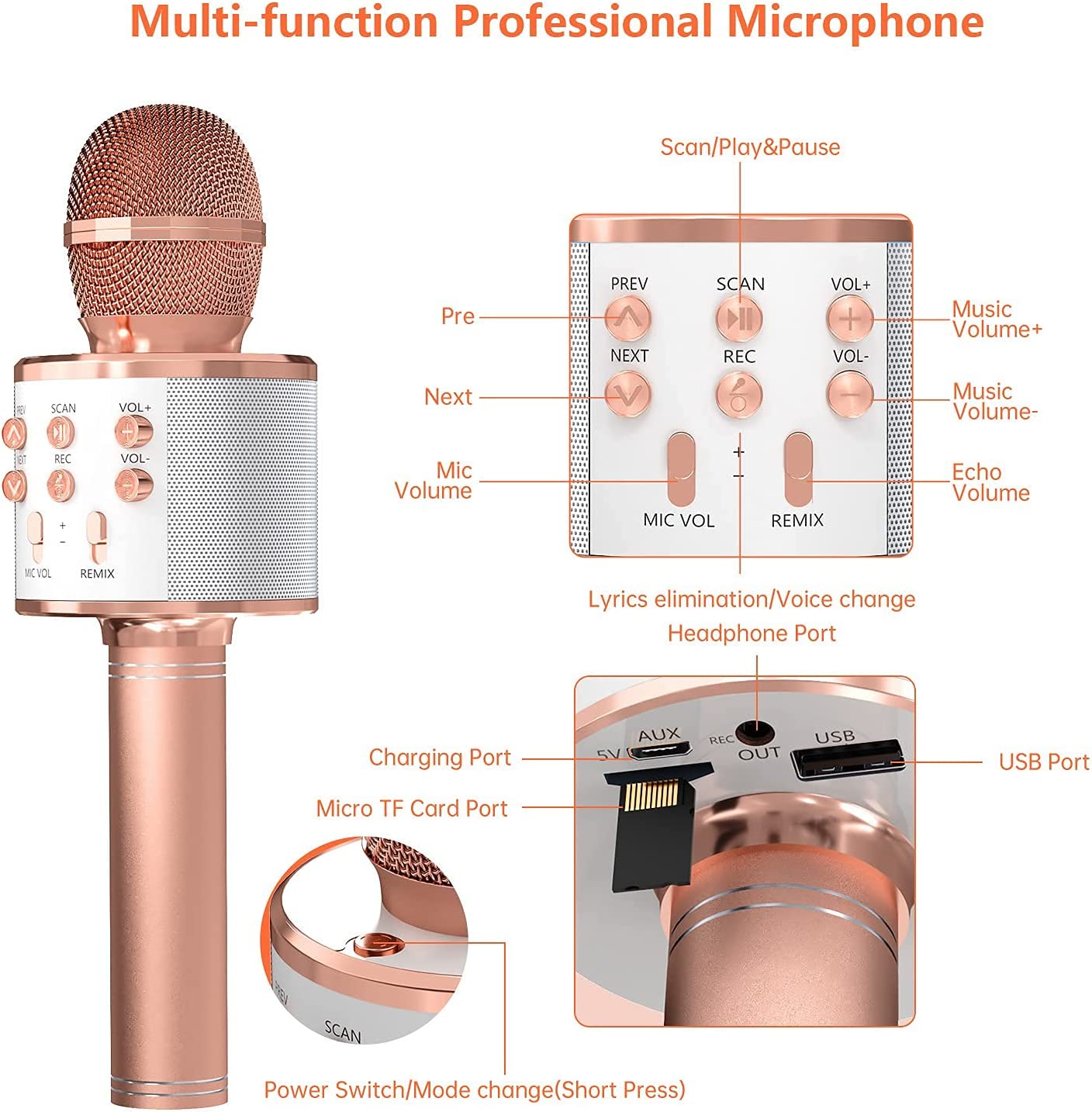 【Great Gifts】The karaoke microphone has a stylish appearance. With this microphone, everywhere is the stage. Let your kids start their little solo concert now. Say goodbye to wired microphone tangles and say hello to the freedom of movement! It is a great birthday or festival gift for your kids, friends, or family.