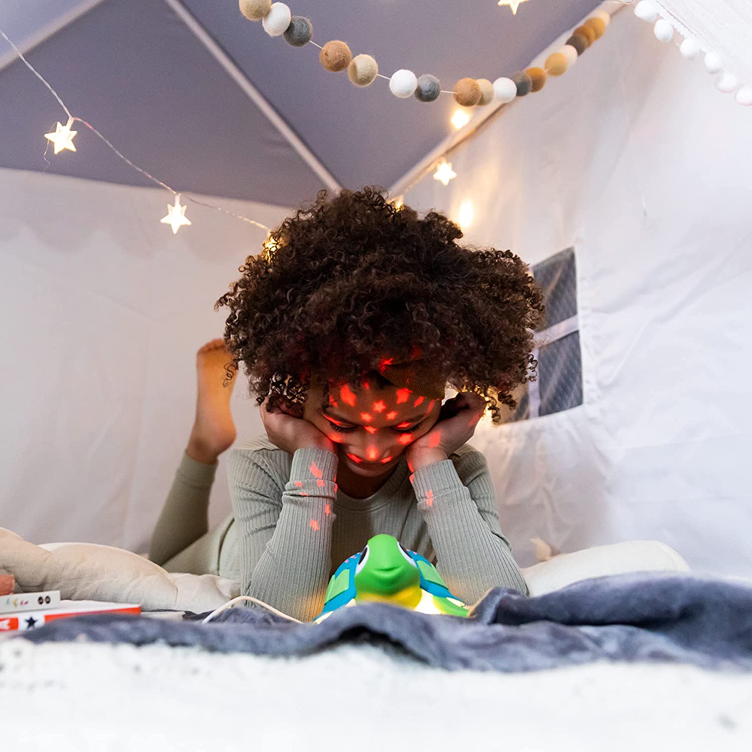 NIGHT SKY CEILING PROJECTOR Project a constellation pattern with the turtle projector night light with three colors and customizable projection. Create a calming ambiance with a spectrum of colors.