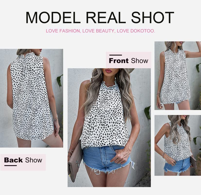 Lace Print Polka Dot Tank Tops features soft, lightweight and breathable fabric,sleeveless style, keyhole back, pull on closure.
