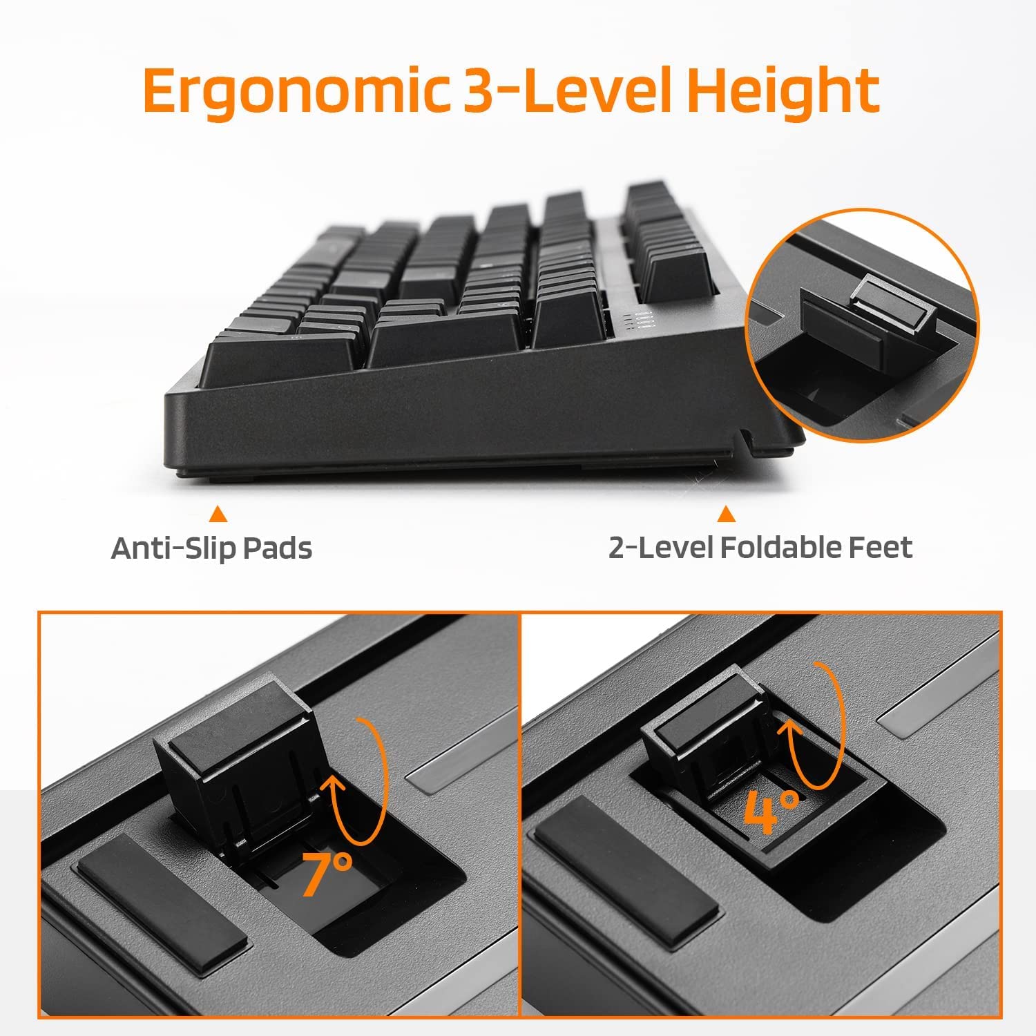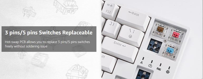 • Hot-swappable Quiet Red - Hot-swap PCB allows you to replace 3 pins/5 pins switches freely,compatible with any MX-style switch (brands like Gateron and Kailh, etc.). Equipped with linear red switch without tactile bump. A favorite for nimble gamers who require swift reactions with minimal resistance or those seeking for quiet typing experience.