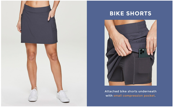 Attached bike shorts underneath with a 4.5" inseam and small compression pocket that fits most cell phones