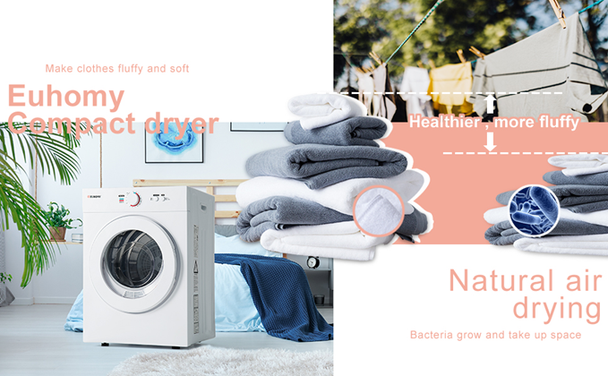 - 【High performance】This is powerful yet compact clothes dryer machine, euhomy portable dryer has a large capacity of 10.5 pounds(wet clothes). This dryer with 1050W power, It can reach a maximum temperature of 140°F, To ensure that your clothes dry quickly. Note: Use after spin-drying, the drying effect is better./The dryer can serve two people/If you have more space needs, you can buy other products of this brand.