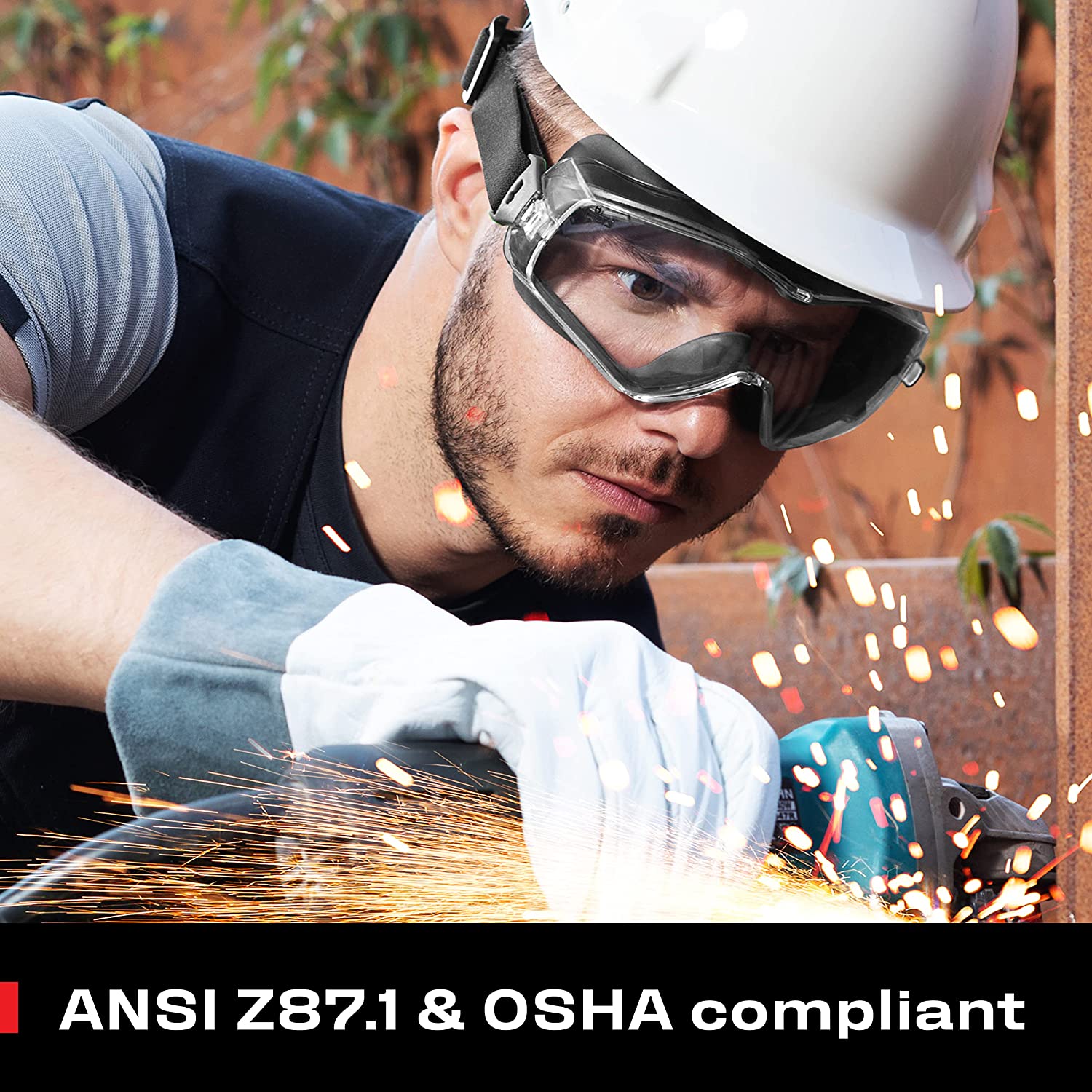 WRAP-AROUND ANTI FOG SAFETY GOGGLES. On top of a premium UDC anti-fog and anti-scratch coating, these clear lenses also come with complete UV protection. The wide-angle lenses are impact resistant at up to 260 mph, offering serious eye protection.