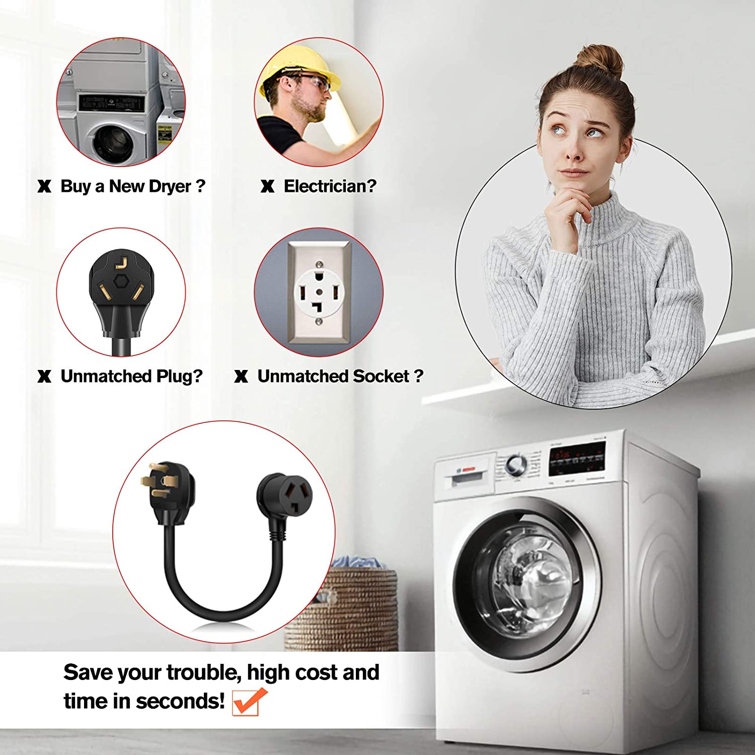 - 【Cost and Time Saving】:Buy a new Dryer? Hire an Electrician? Unmatched Plug and Old Dryer Outlet? This dryer adapter 3prong to 4 prong is the most effective and economical solution. Solve your issue just in seconds.