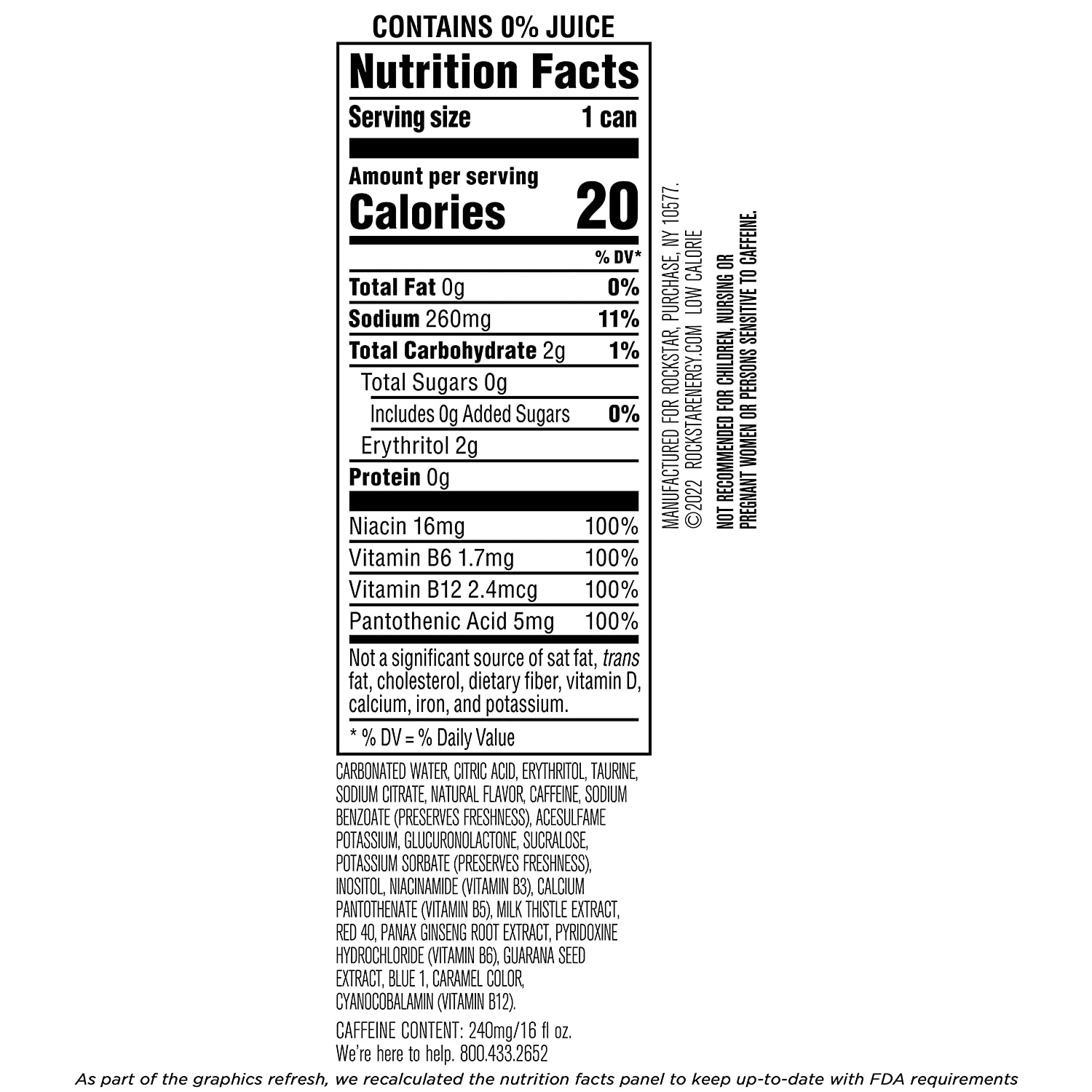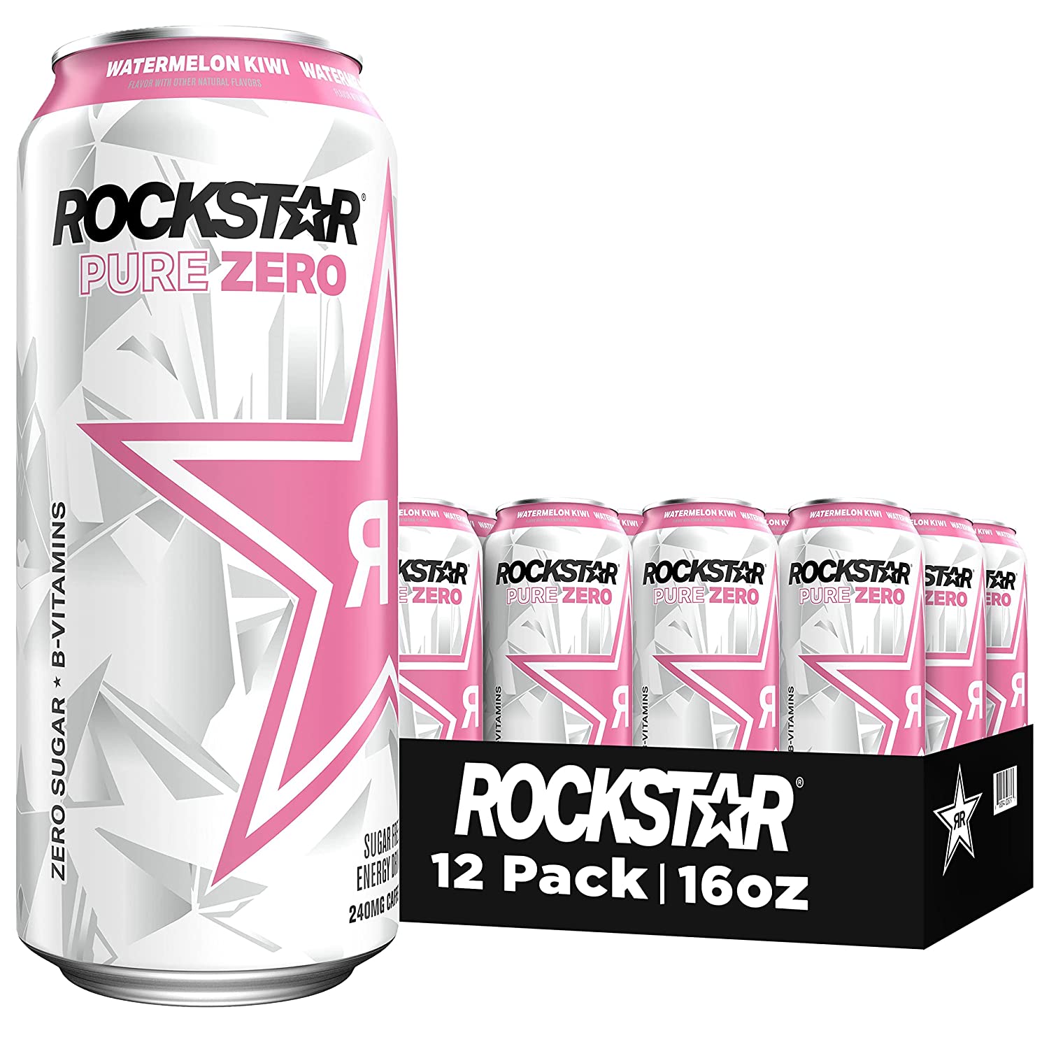 Rockstar Pure Zero Energy Drink,Watermelon Kiwi, 0 Sugar, with Caffeine and Taurine, 16oz Cans (12 Pack) (Packaging May Vary)