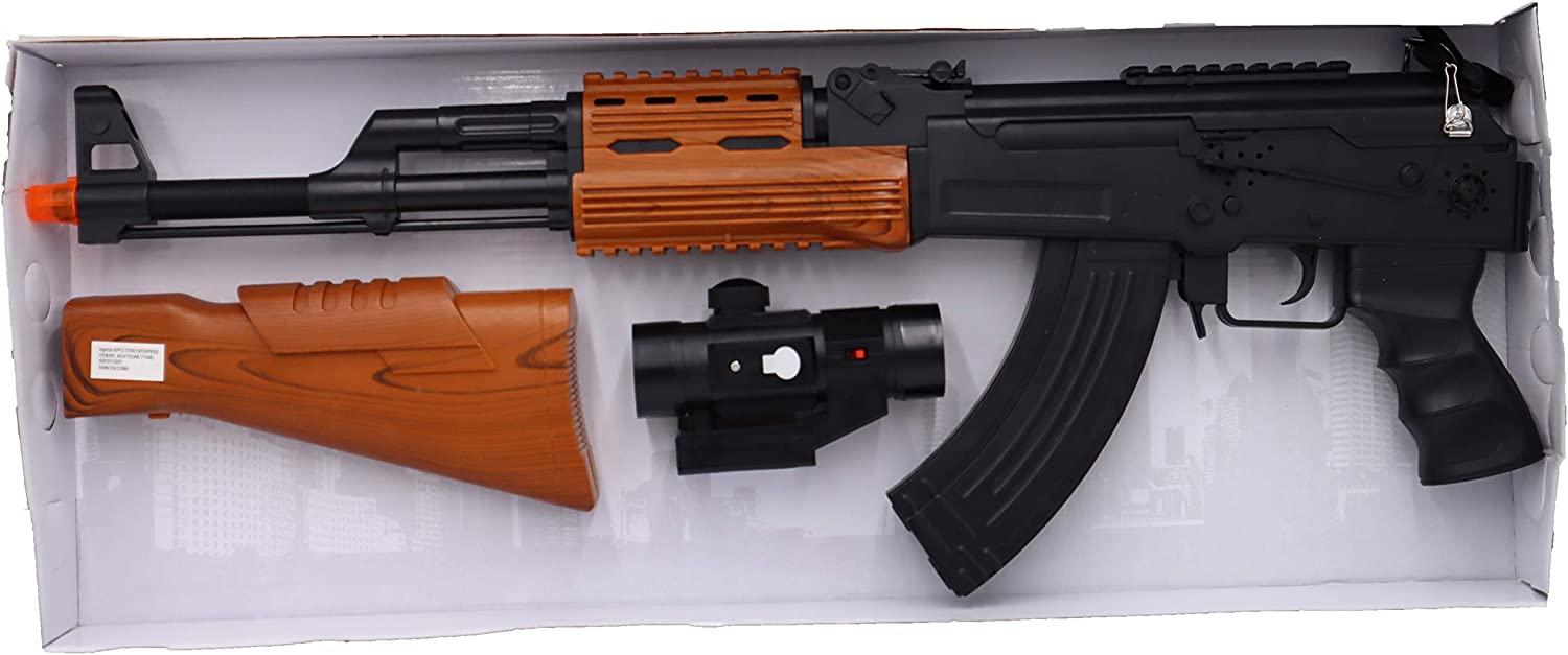 Realistic Looking Toy Riffle with dazzling light and firing sound effect. JOYSAE’s AK-7744B gun toy is the best gift for little boys during the holiday season.
