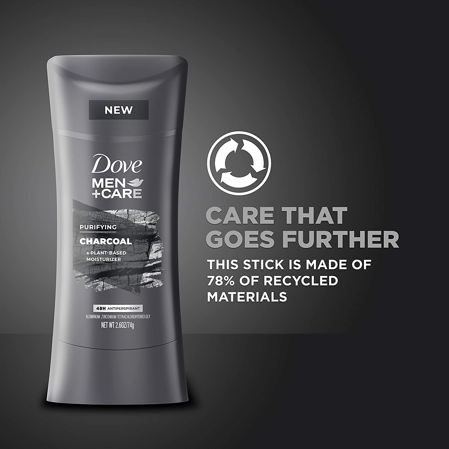 A natural inspired deodorant with 48-hour protection against sweat and odor, and lasting freshness - that's the Dove Men+Care antiperspirant with Charcoal. For men who want protection that works through busy, active days, this antiperspirant deodorant for men is made to leave you feeling purified and dry for a full 48 hours. This antiperspirant is one of the strongest defenses against sweat and odor, with natural essential oil extracts, plant-based moisturizers and the purifying feeling of Charcoal. This deodorant offers long-lasting performance and comfort because it's tough on sweat, but not on the skin. Swipe with ease to experience a smooth glide and keep your underarms feeling clean for the long-lasting protection that you need. You can also rest assured that Dove's global commitment to sustainability means this deodorant is cruelty-free, with no testing done on animals. To complete your grooming routine, explore the entire Dove Men+Care Plant-Based Care range. Whether it's the Dove Men + Care Charcoal Clove Body Wash or the Dove Men + Care Eucalyptus+ Birch, there are many options to pair this deodorant with. You can also choose from Dove Men + Care 0% Aluminum deodorant sticks and sprays available in invigorating scents like Lime + Sage and soothing ones like Sandalwood + Orange.Un desodorante de inspiración natural con protección de 48 horas contra el sudor y el olor, y frescura duradera, es el antitranspirante Dove Men+Care con carbón vegetal. Para los hombres que quieren una protección que funcione durante días ocupados y activos, este desodorante antitranspirante para hombres está hecho para dejarte purificado y seco durante 48 horas. Este antitranspirante es una de las defensas más fuertes contra el sudor y el olor, con extractos naturales de aceites esenciales, humectantes a base de plantas y la sensación purificadora de carbón. Este desodorante ofrece un rendimiento duradero y comodidad porque es resistente al sudor, pero no a la piel. Desliza con facilidad para experimentar un deslizamiento suave y mantener las axilas con una sensación limpia para la protección duradera que necesitas. También puede estar seguro de que el compromiso global de Dove con la sostenibilidad significa que este desodorante está libre de crueldad, sin pruebas realizadas en animales. Para completar su rutina de aseo de limpieza, explore toda la gama Dove Men+Care Plant-Based Care. Ya sea el lavado corporal Dove Men + Care Charcoal Clove o el Dove Men + Care Eucalyptus+ Birch, hay muchas opciones para combinar este desodorante. También puedes elegir entre palillos desodorantes y aerosoles Dove Men + Care 0% aluminio disponibles en aromas estimulantes como lima + salvia y calmantes como sándalo + naranja.