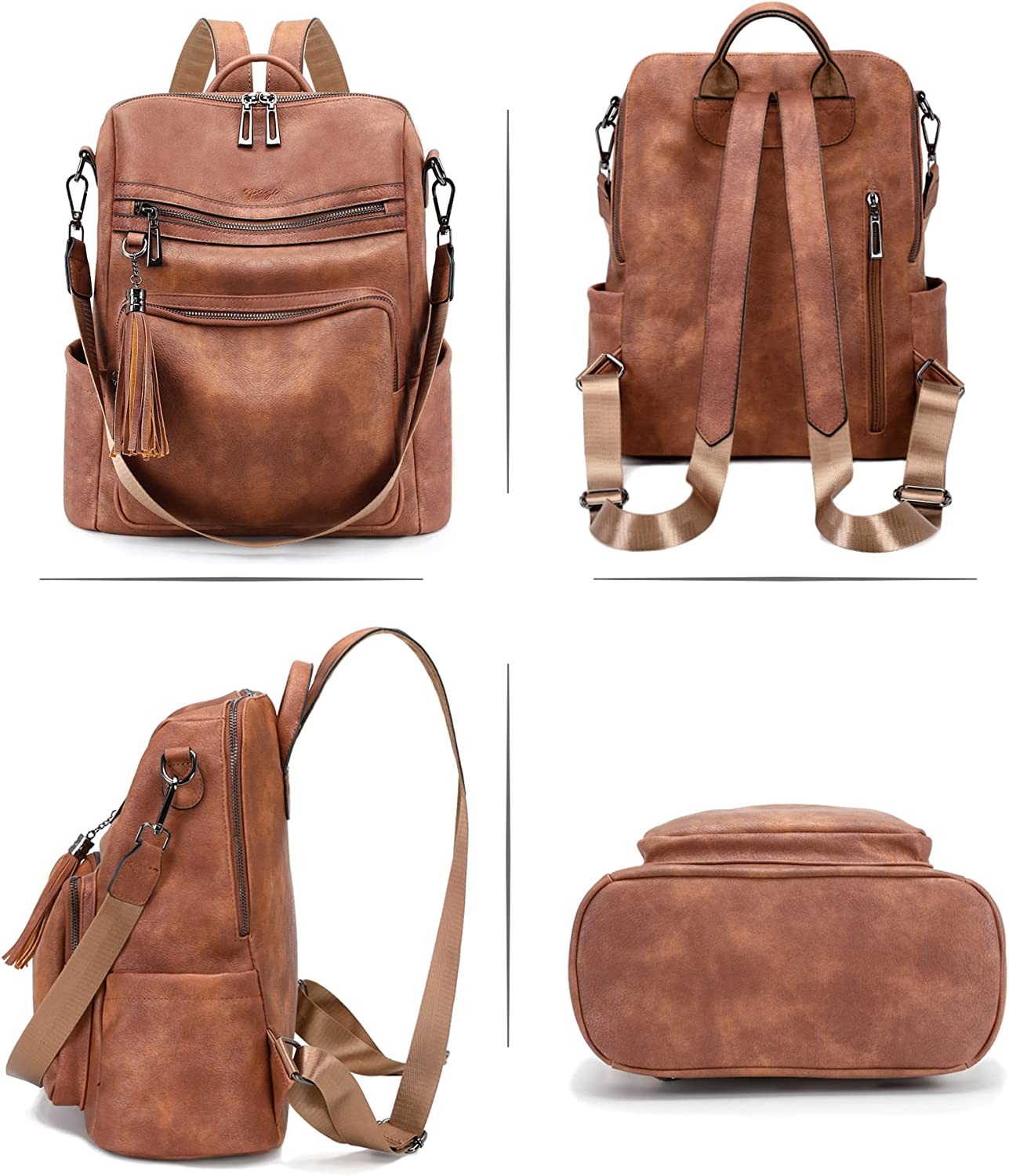 • 【HIGH-QUALITY MATERIAL】 This backpack purse for women is made of high-quality water-resistant, anti-scratch and tear-resistant soft PU leather, metal accessories, canvas long shoulder strap and fabric lining, and there is a cute tassel next to the front zipper pocket, all of these are fashionable and durable.