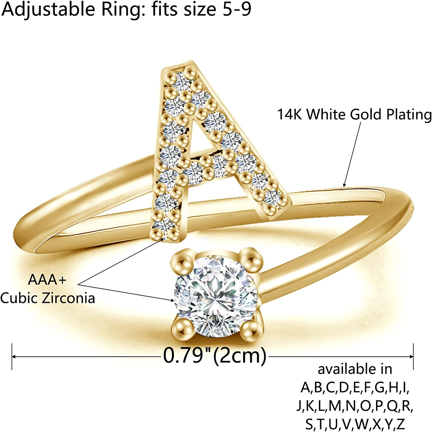 HIGH QUAITY MATERIAL: Made from high quality copper with gold plated, each of these girls rings are hand set with beautiful cubic zirconia stones. This alphabet ring is classic and elegant that people of all ages can enjoy them.