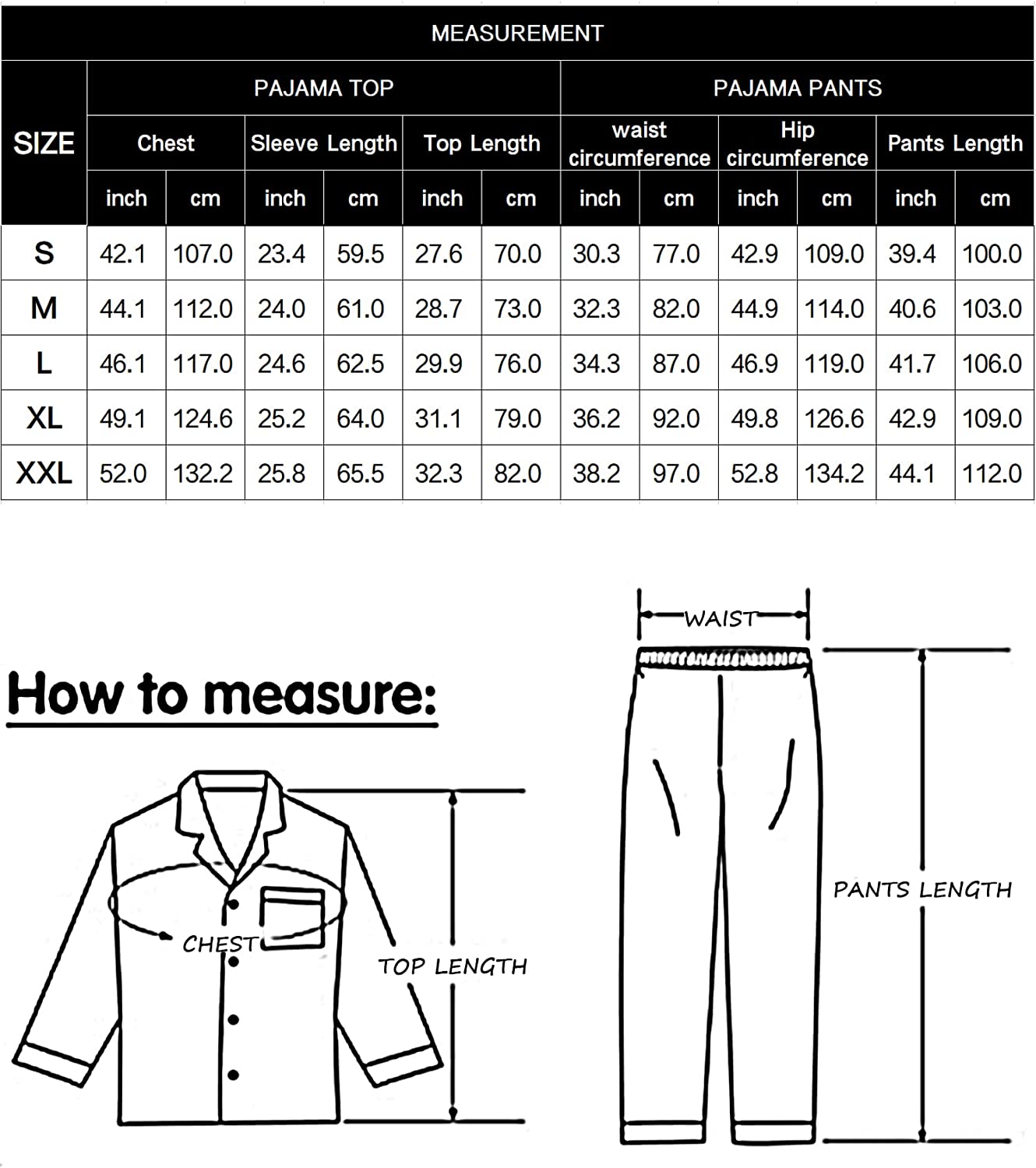 We provide Men's Satin Pajamas Set in sizes S to XXL. Please choose the men's sleepwear according to our size chart!