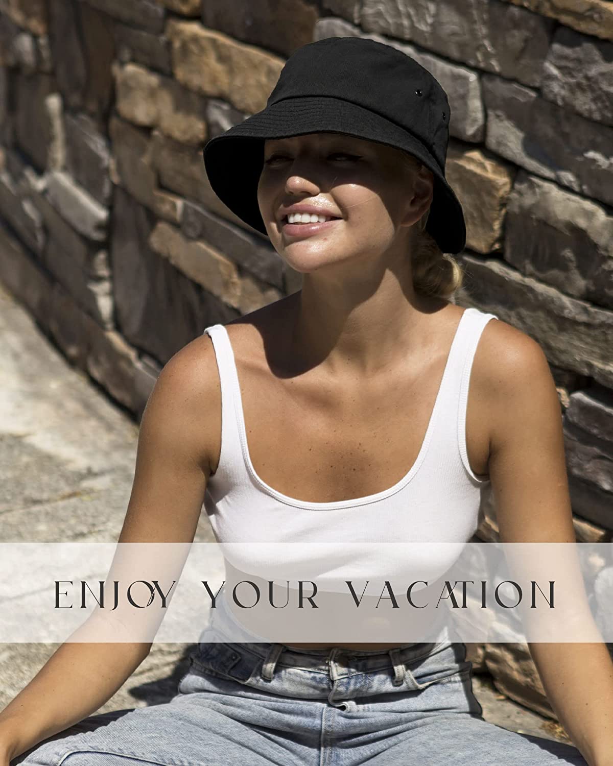 • Bucket hat is made of 100% high quality washed cotton which can maintain the shape well, protect your head and prevent sun damage. The breathable material make you feel comfortable when wear it all day;This summer hat is perfect for outdoor activities and sports;