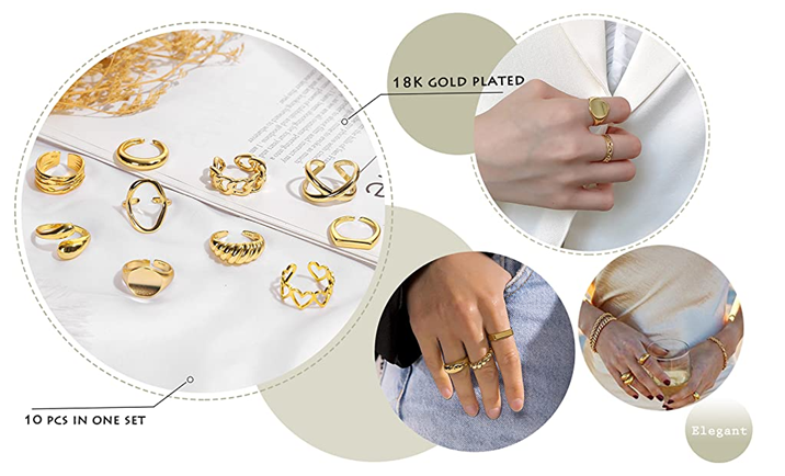Such a gold ring set, Perfectly Meet your need for wearing on fingers of different size ~