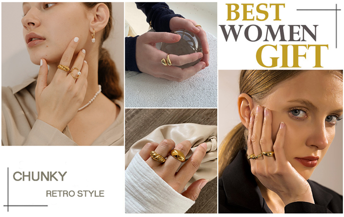 - [Perfect Gifts]---gold chunky rings are packed in a cute pink velvet bag. This is a unisex ring, which can be easily worn regardless of gender and age. You can use it on some special days (such as anniversary, Christmas, Valentine's Day, Mother's Day, Thanksgiving Day) give them to your family, friends, colleagues, lovers. Surprise them!