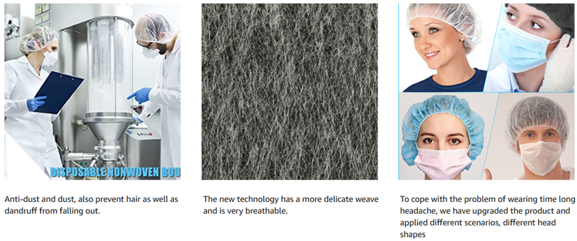 • [WIDE RANGE OF APPLICATIONS] :Hair covers widely used in food service,Manufacturing,Medical,Work,Cooking.