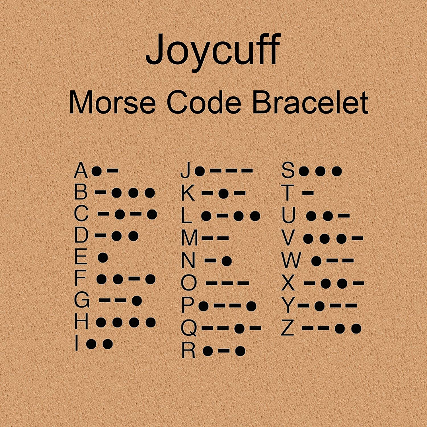 The stainless steel bead on the bracelet represents a "dot" in code, and the hematite bead represents a "dash".