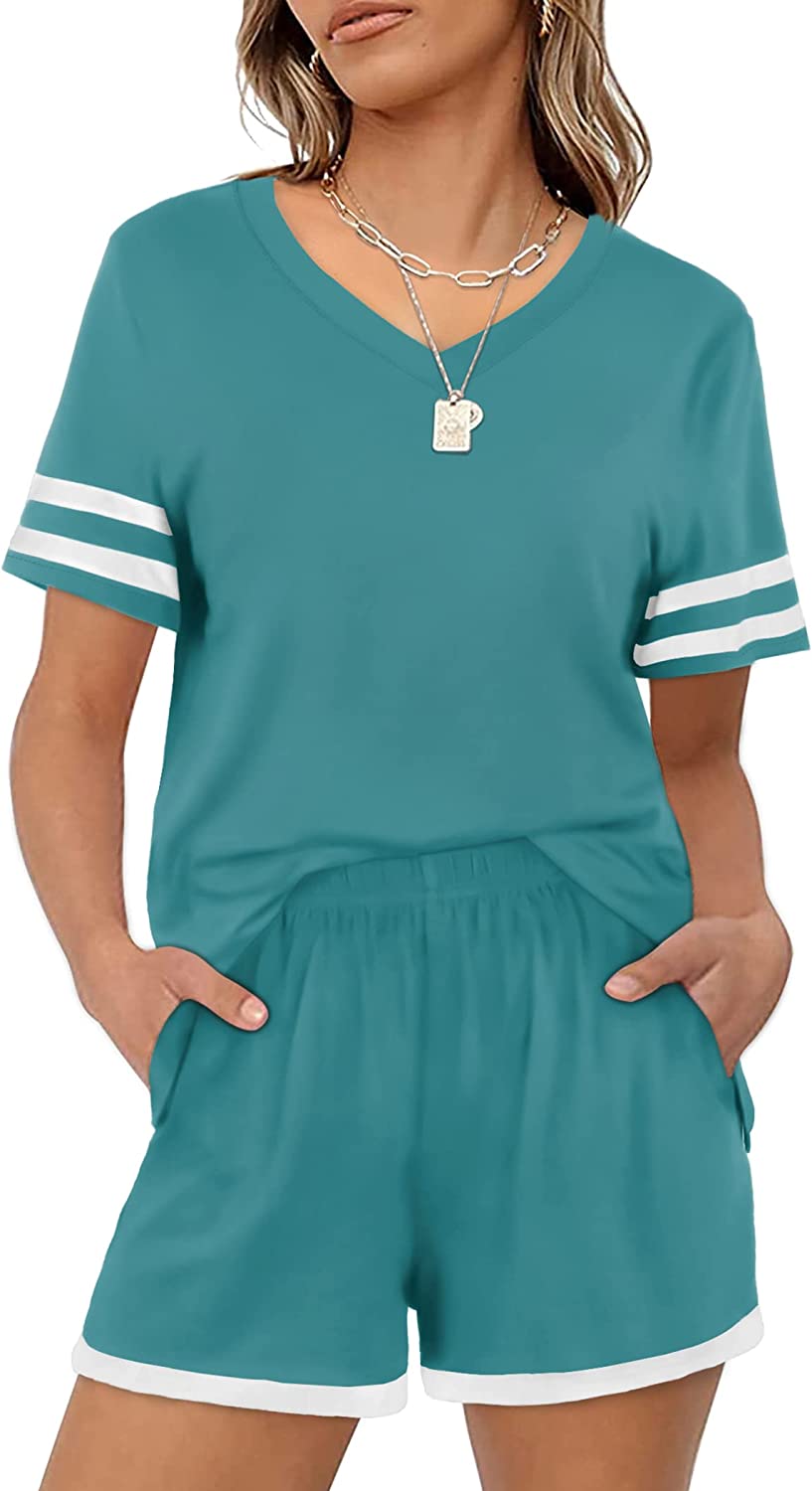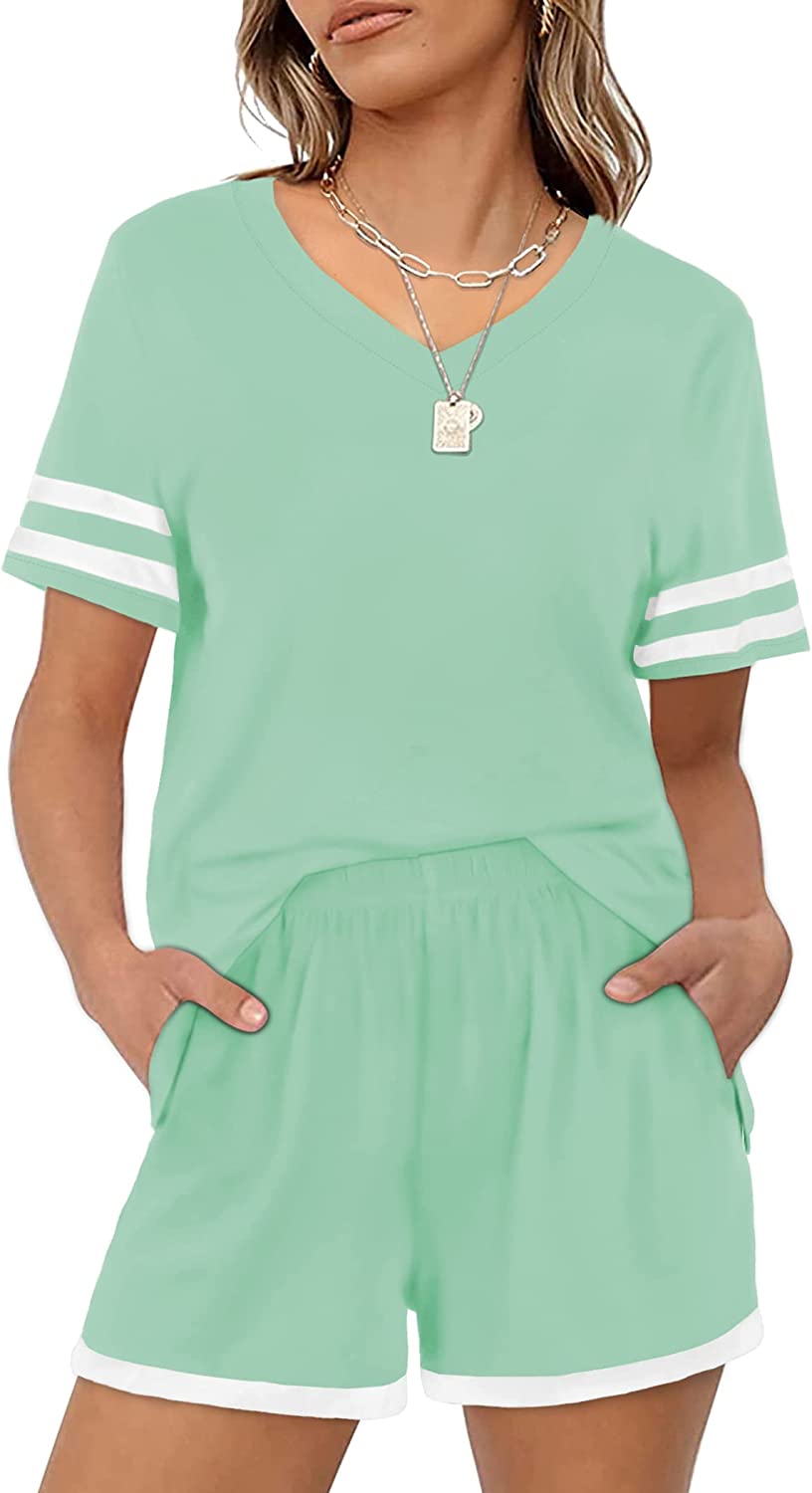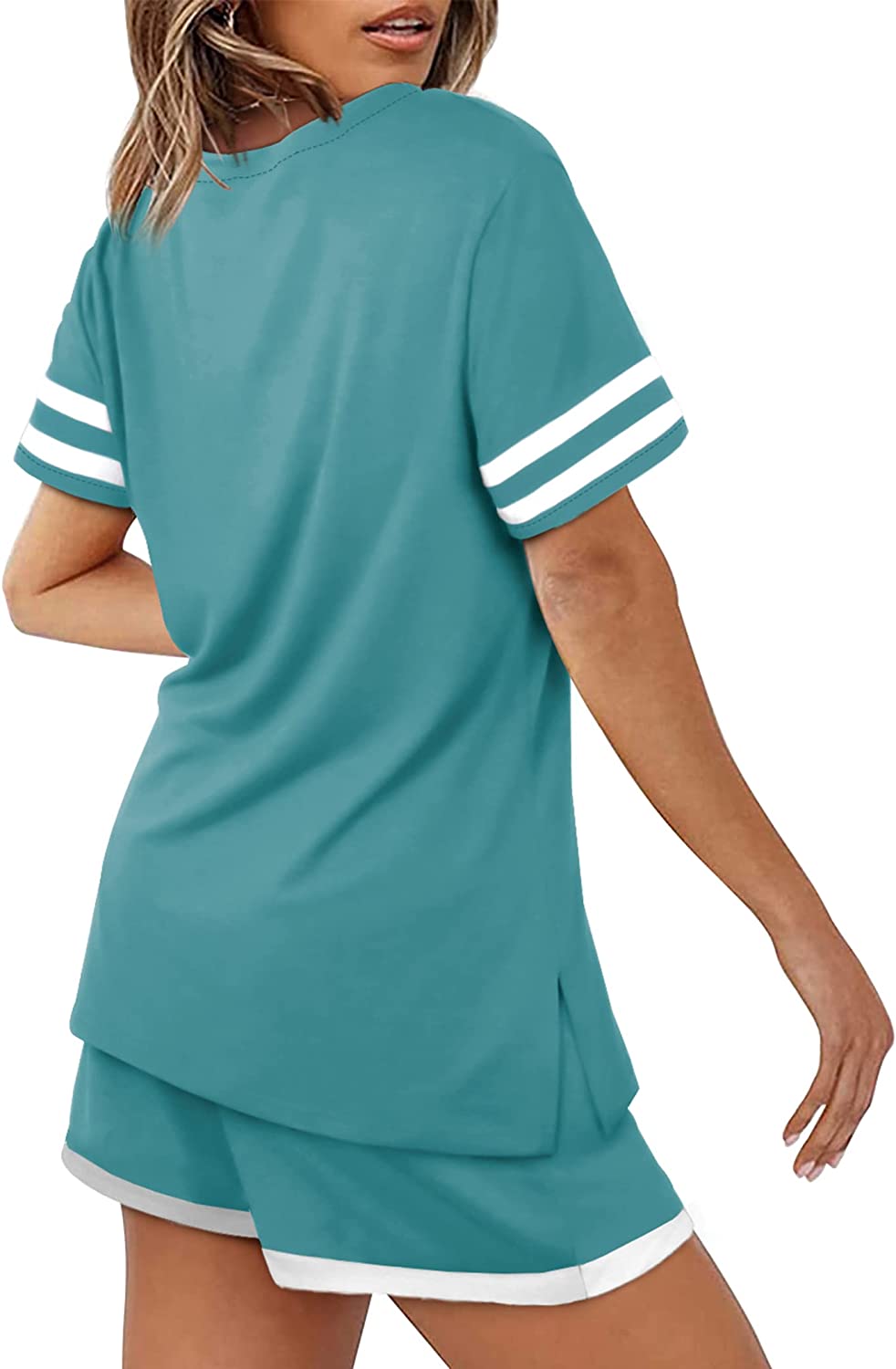 Aloodor Two Piece Outfits for Women Summer Short Sets with Pockets Lounge Set